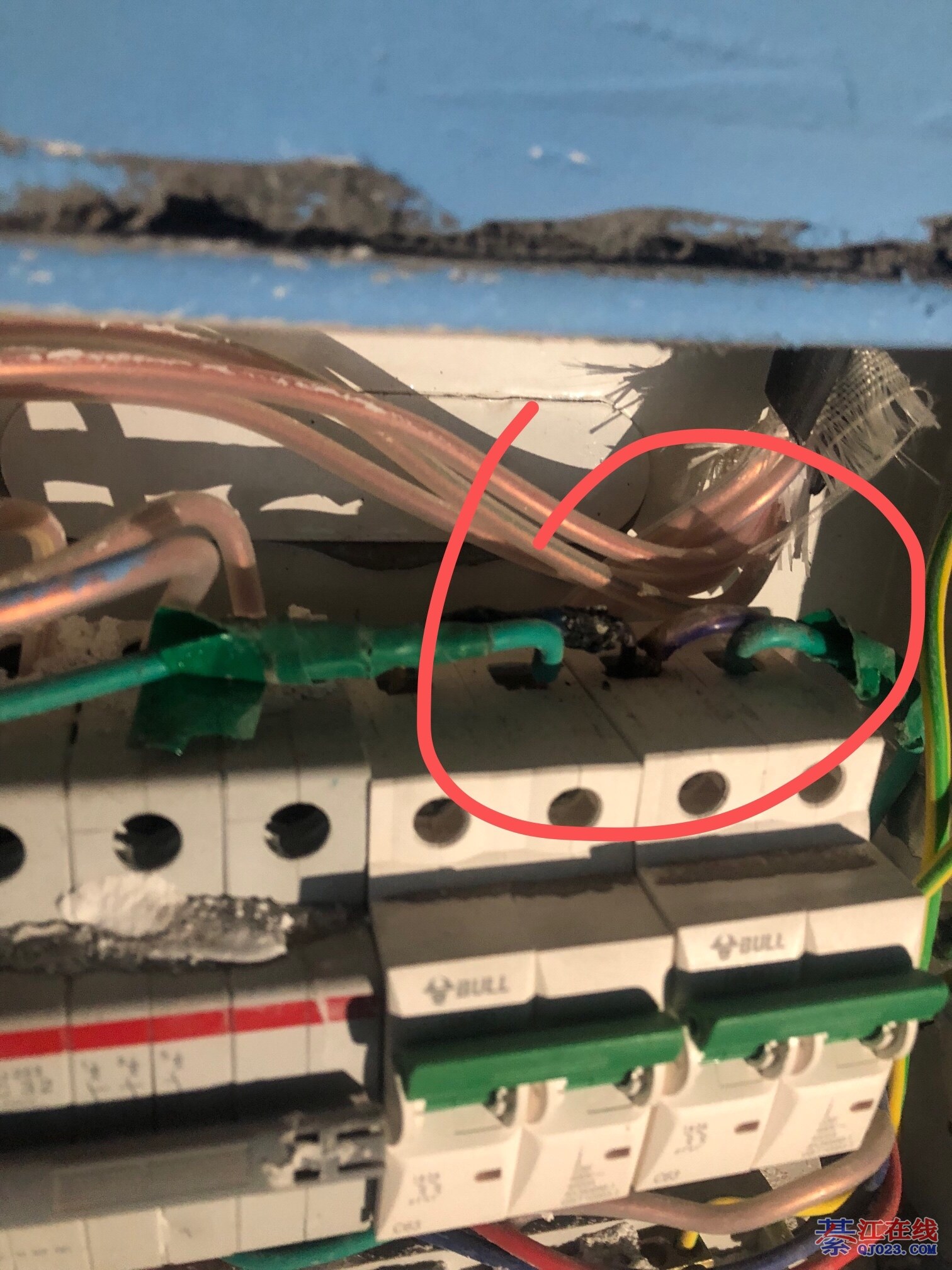 线没有压紧,或者螺丝忘了紧,很多老电工也会有这种失误。只不过你这个电工布线也太没水平了。