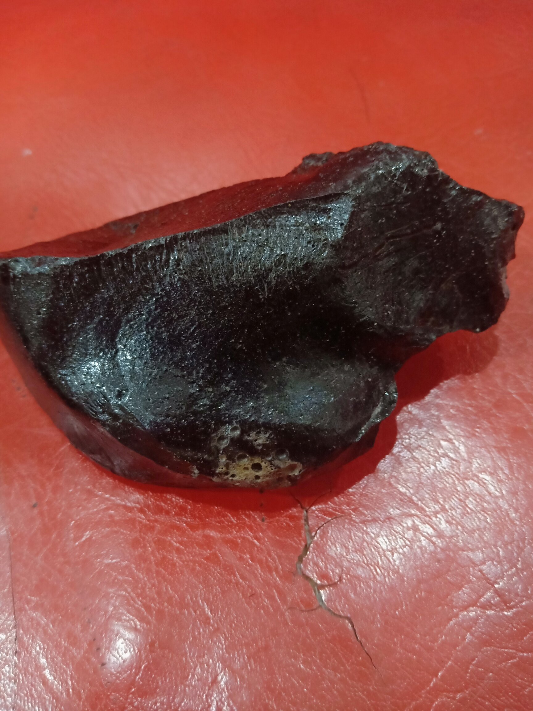 不是,这是烘炉房炉渣 →煤炭里夹杂的玻璃或耐温材料里含的石英砂经过高温形成的,以前在512文龙乡政 府旁的烘炉房赵家坪砖厂外面的打铁房废弃的炉渣中多得是,现在这类作坊很少,年轻人就很少见到,所以误以为是玻璃陨石。