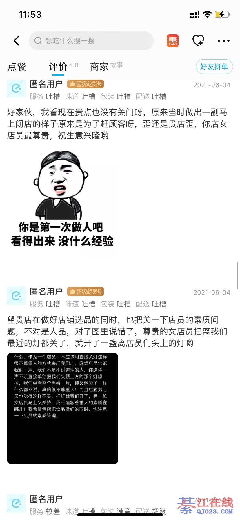 差评这个东西,店家是删不了的 做过外卖的都应该知道,安静的当吃瓜观众,别喷我