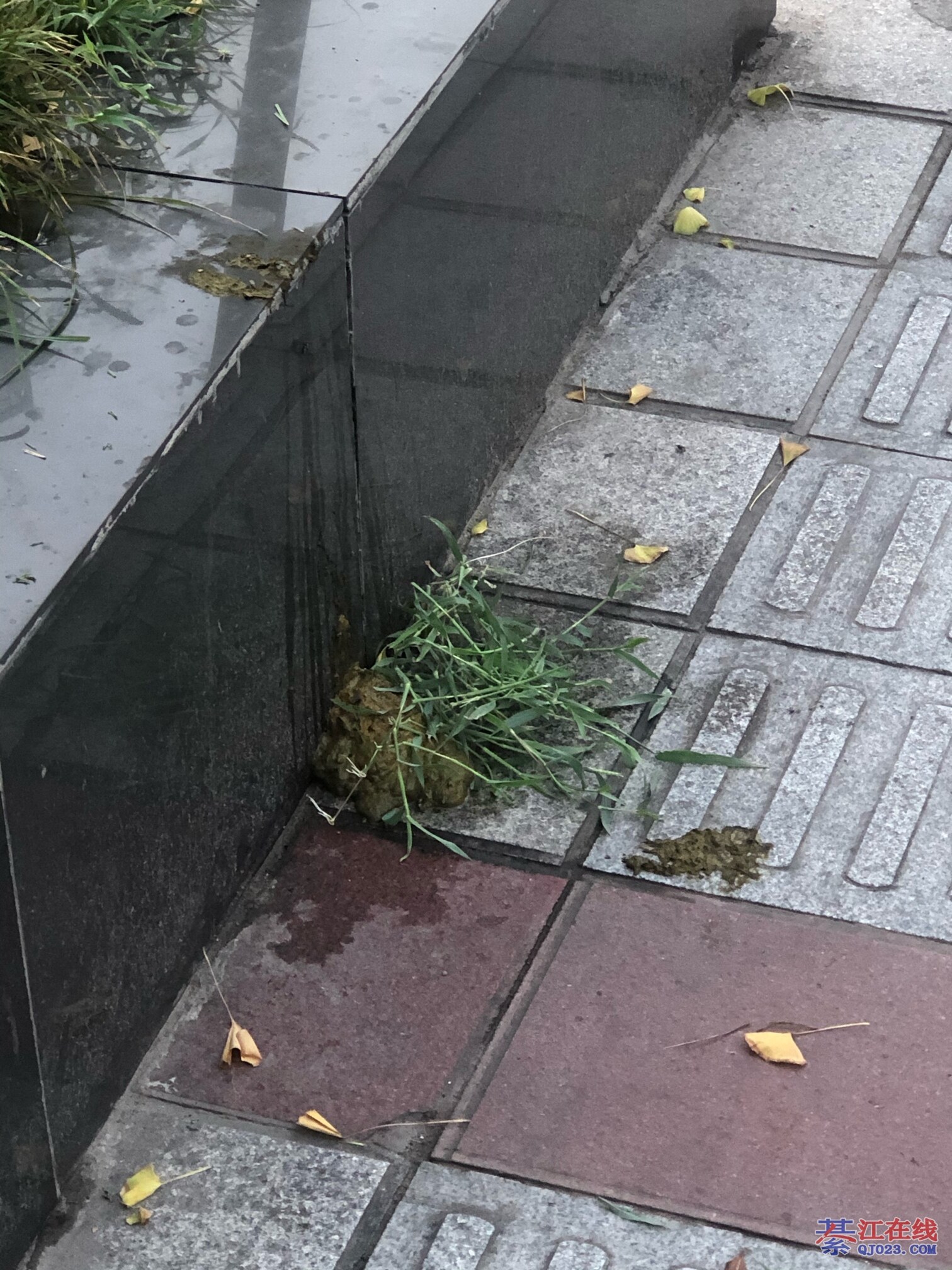 注意观察是蹲到花台上拉下来的,狗屎有这么大堆迈