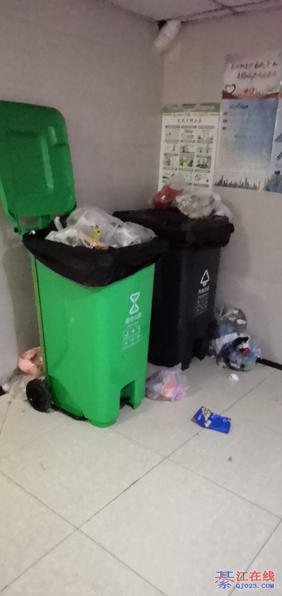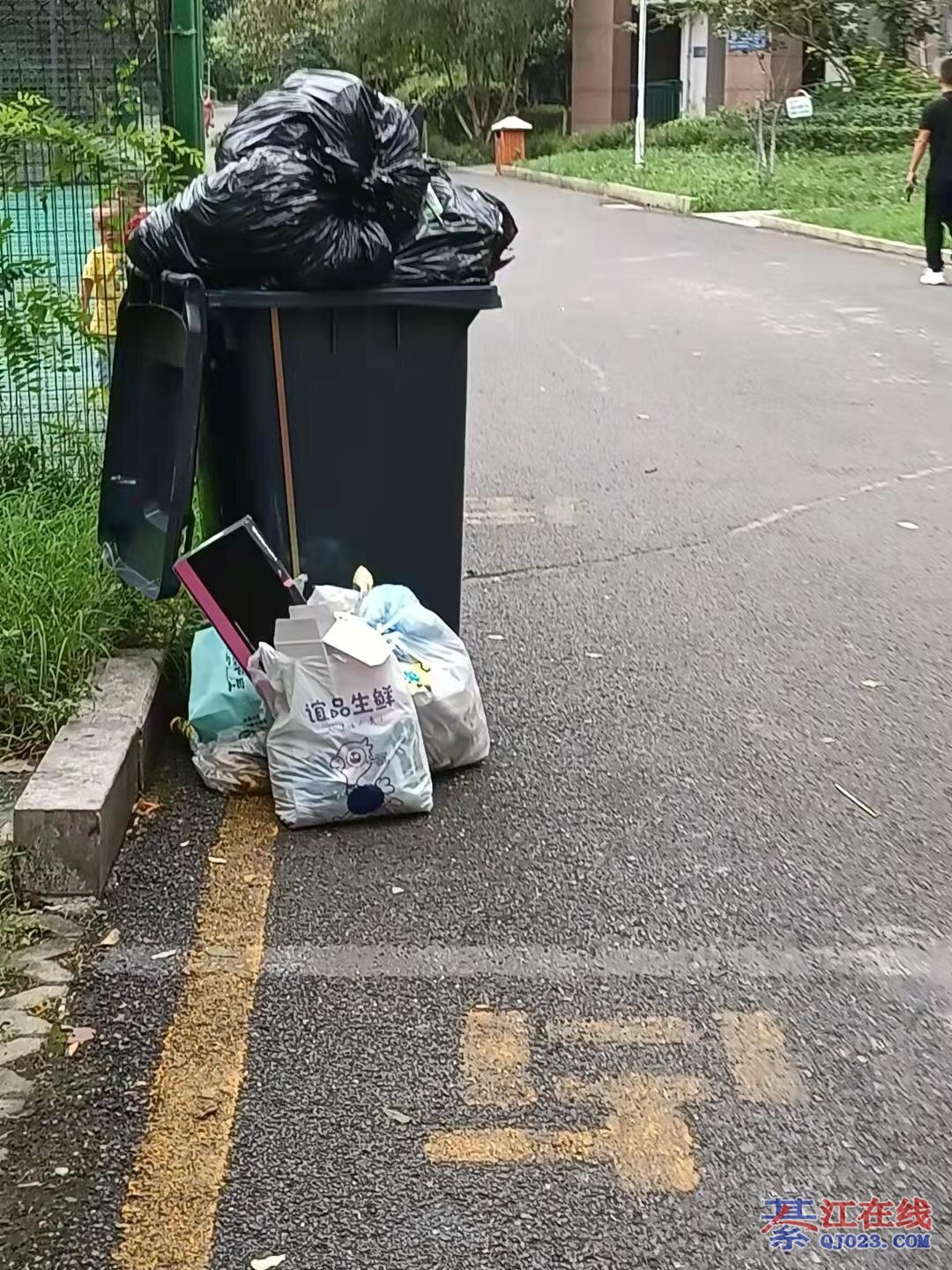 这个就是扔在指定的地方垃圾桶少了装不下呀!又没有及时的清理?所以就变成垃圾小区了!!