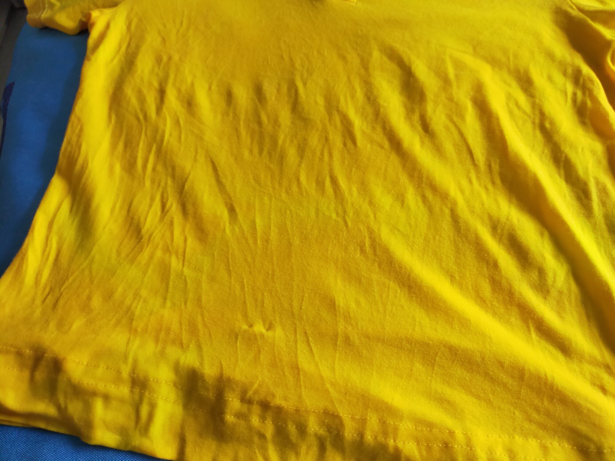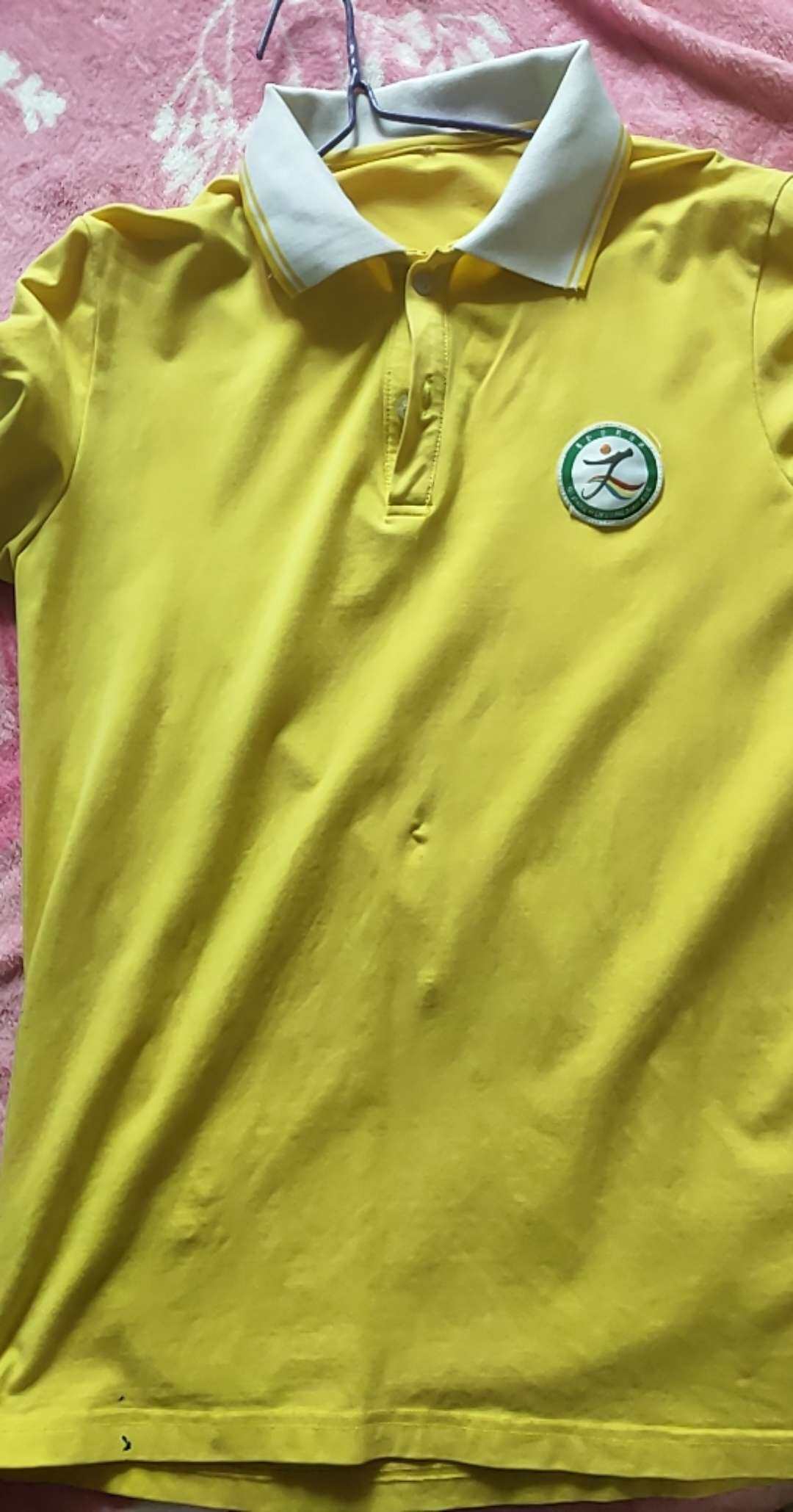 还可以穿,不行就买件黄色短袖,把那个标剪下来缝新的短袖上面