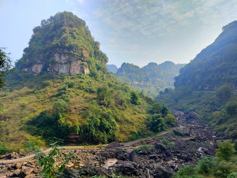 永新到中峰中间路段,下面现在是枯水期,干河沟。