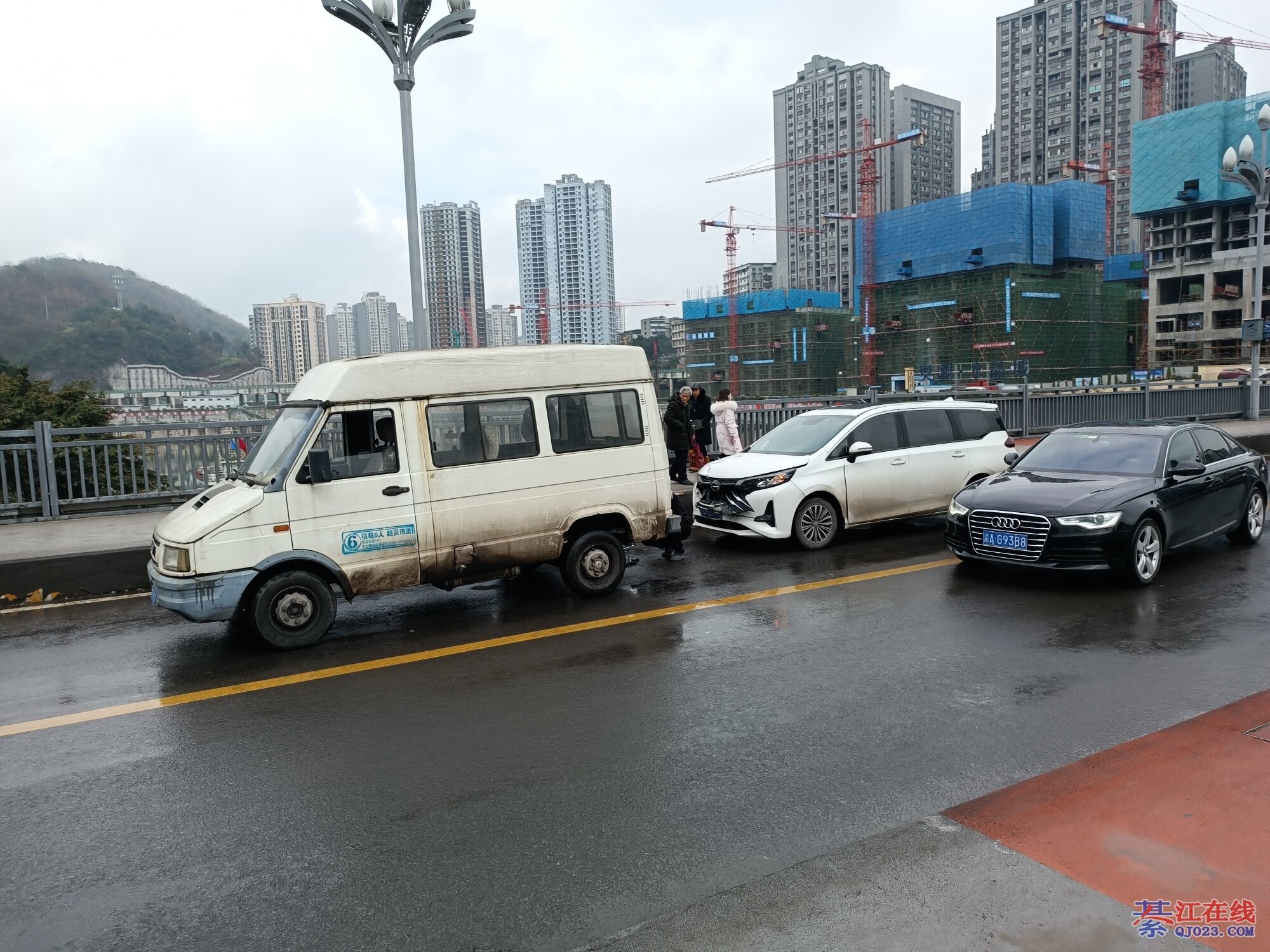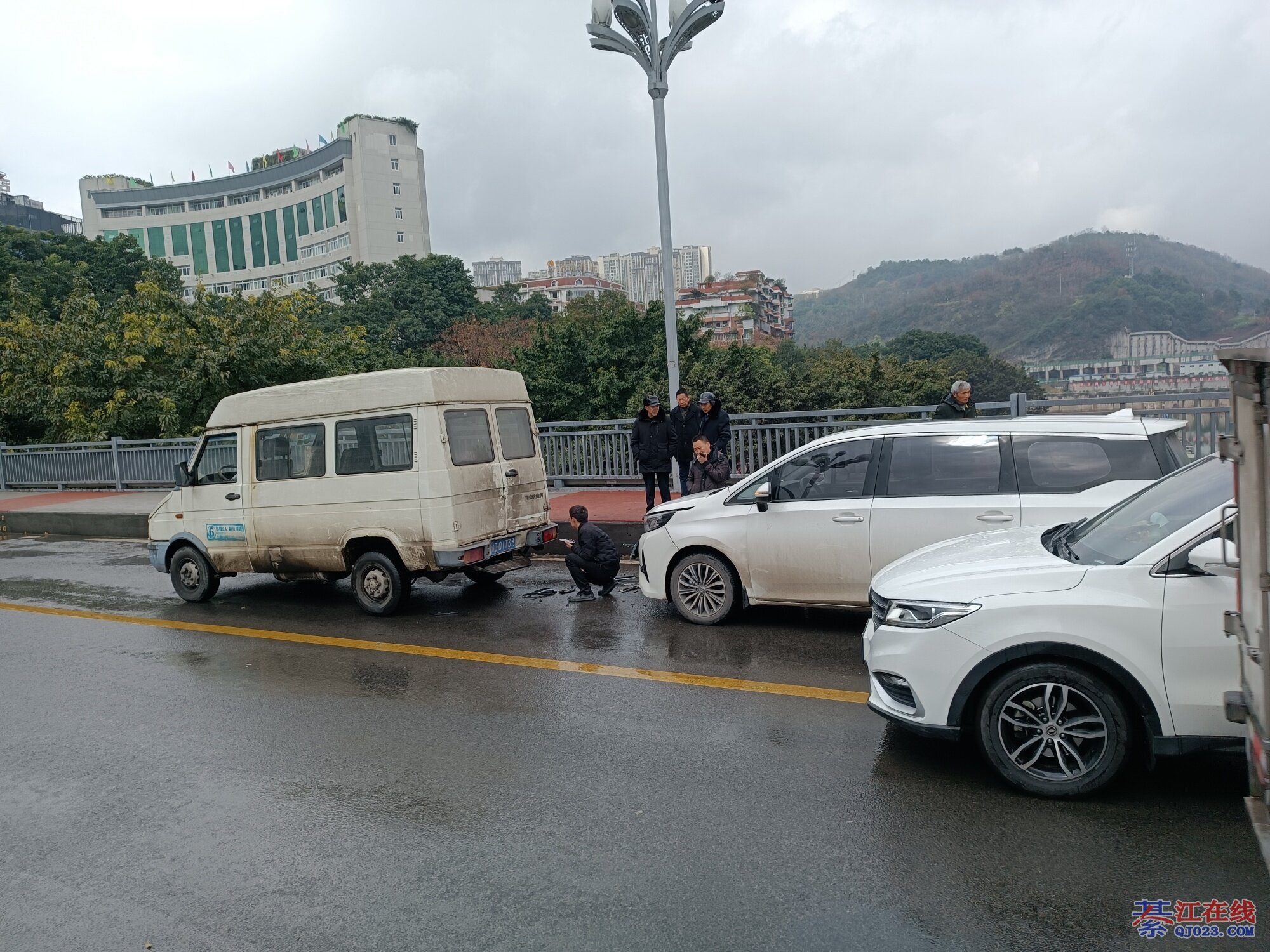 上个月我在那停起等红灯,着别个撞了