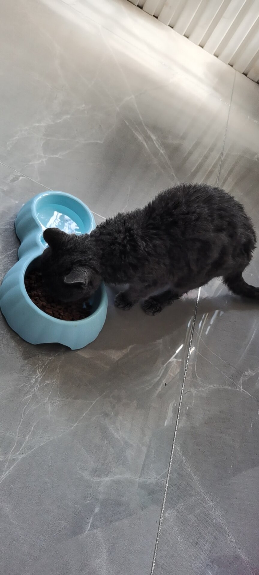 我家也有只篮猫,胆小,肯定是跑丢的,它会悄悄的来吃,我门市经常留缝隙喂流浪猫,晚上悄悄的来吃,