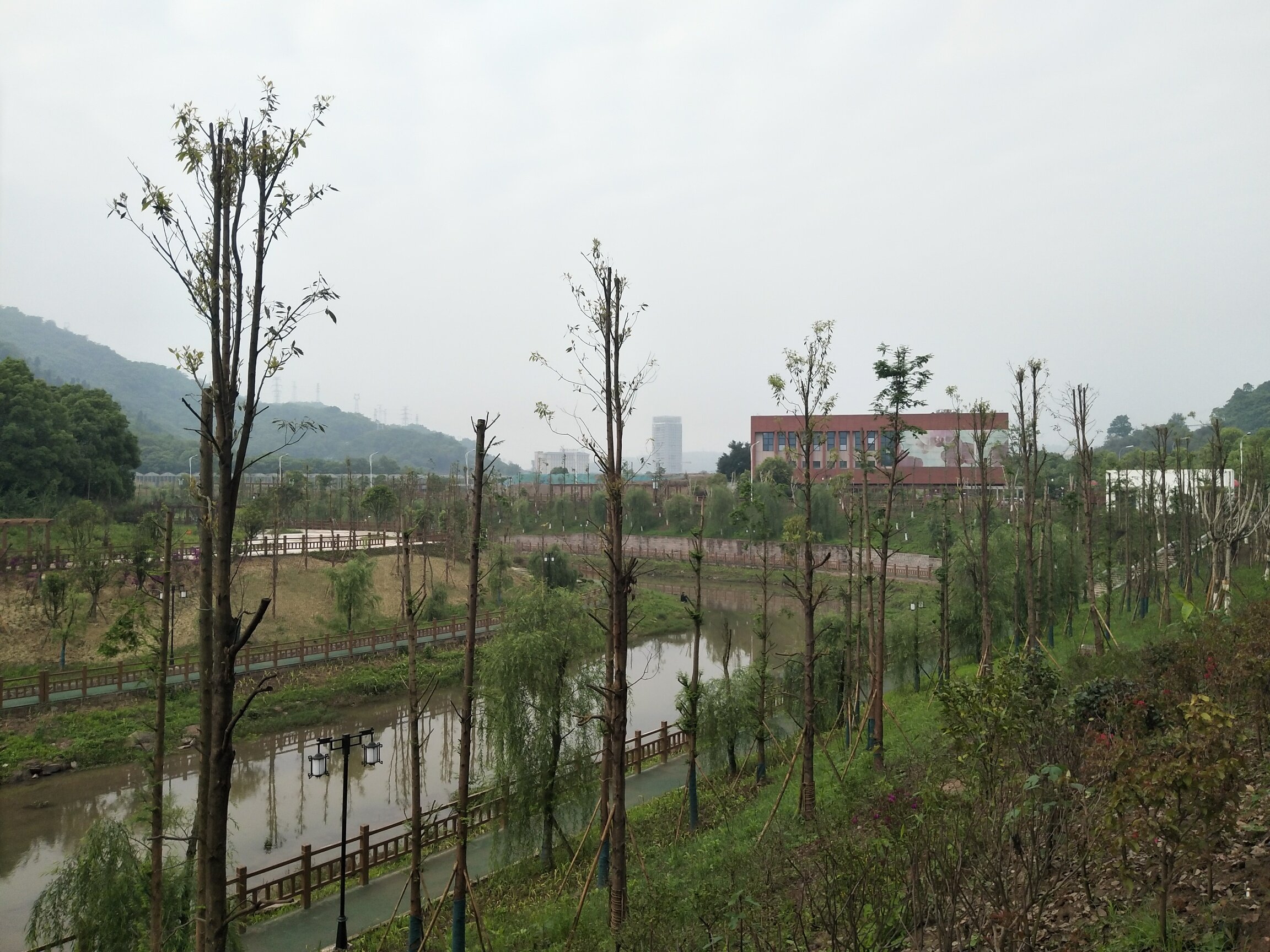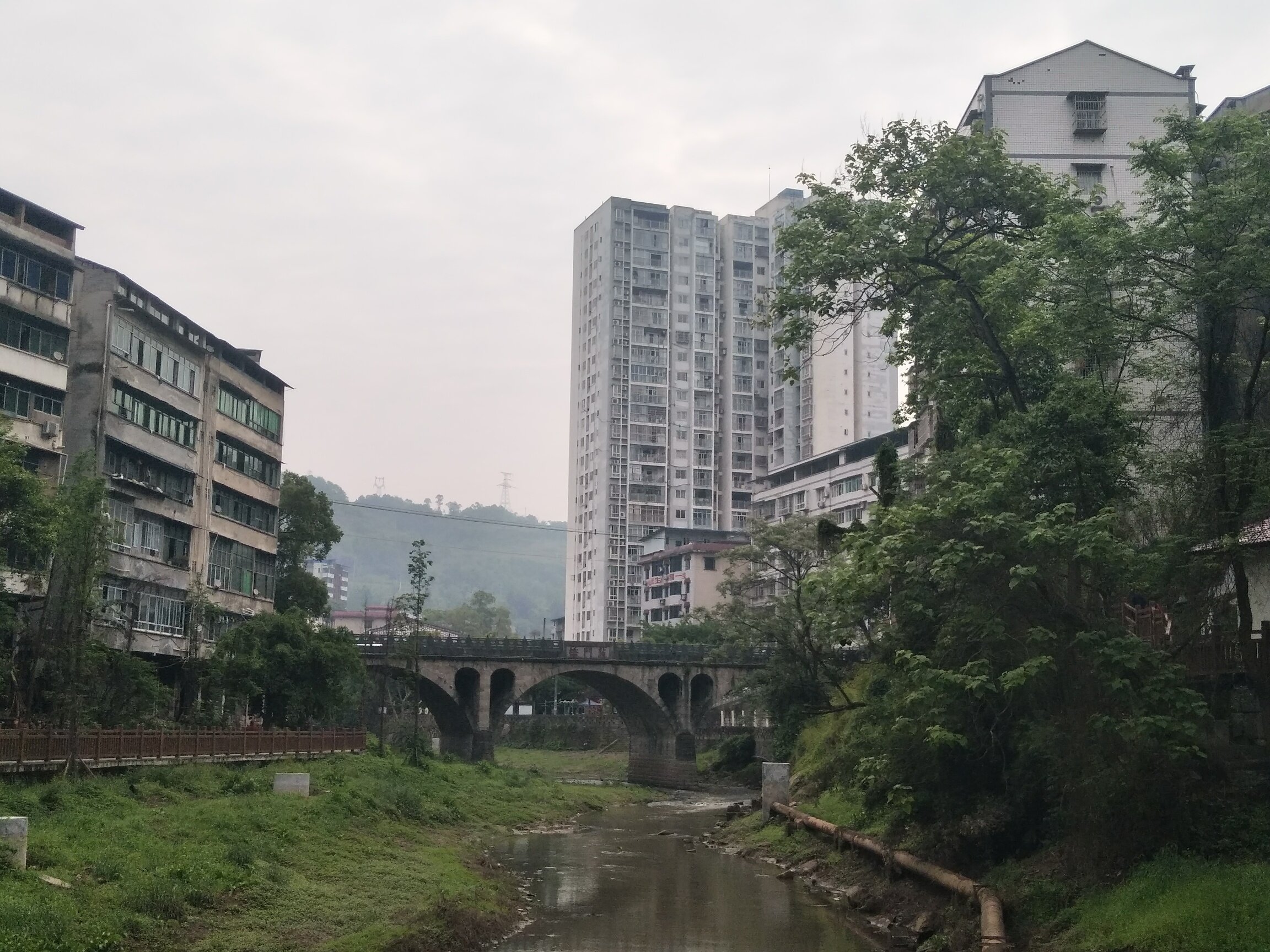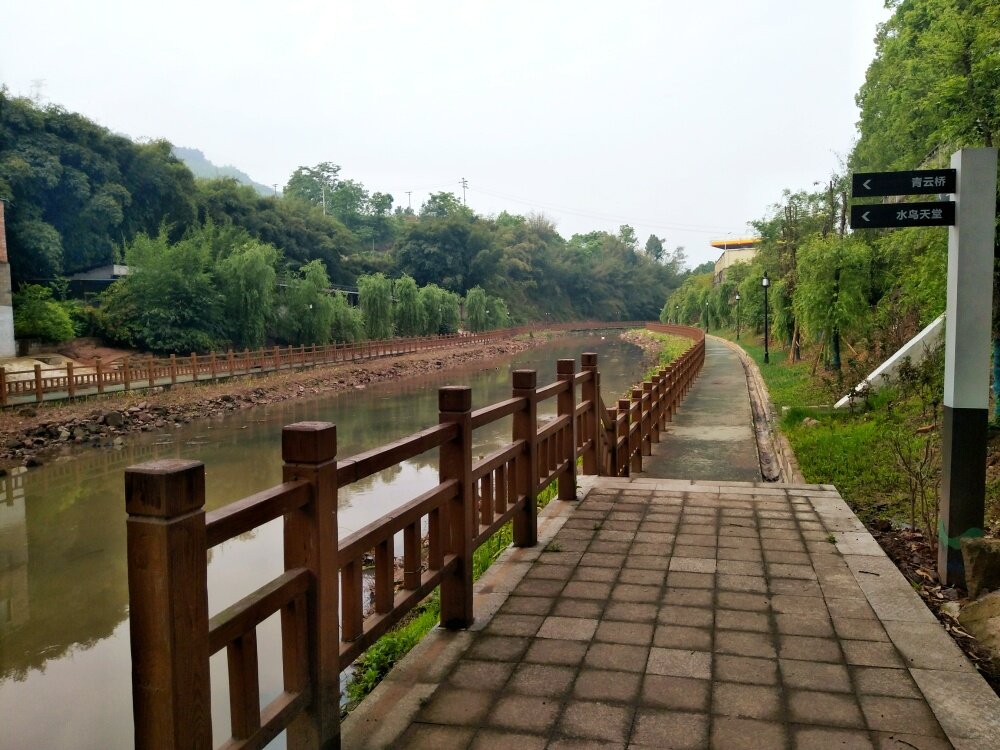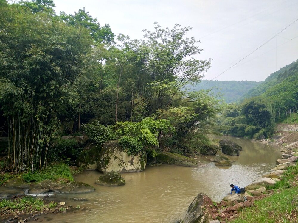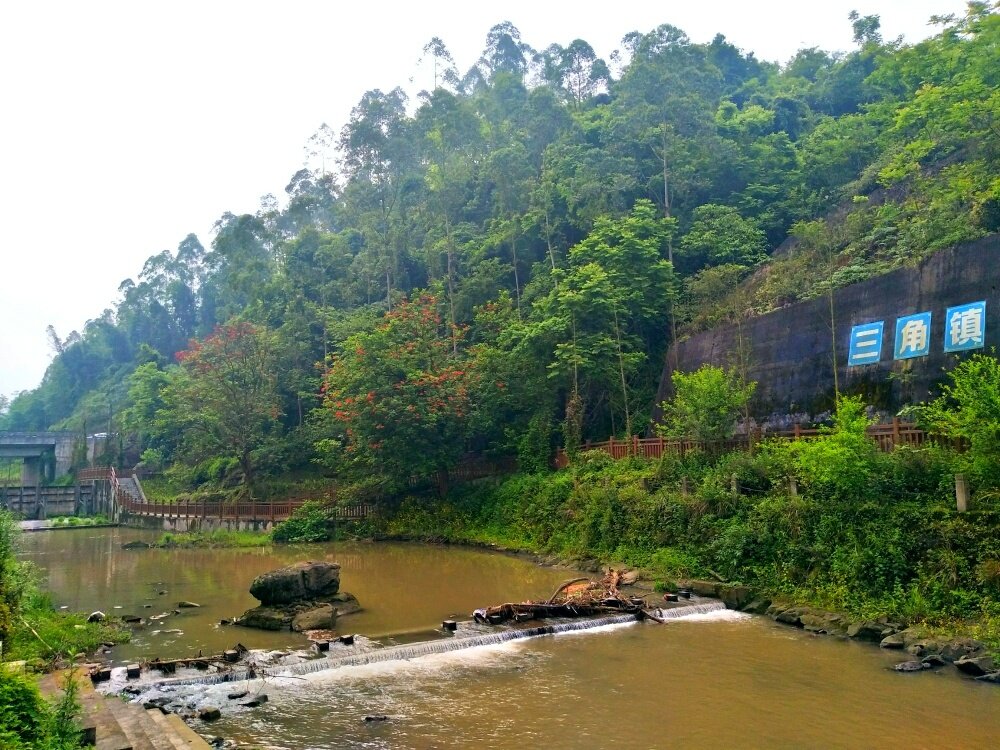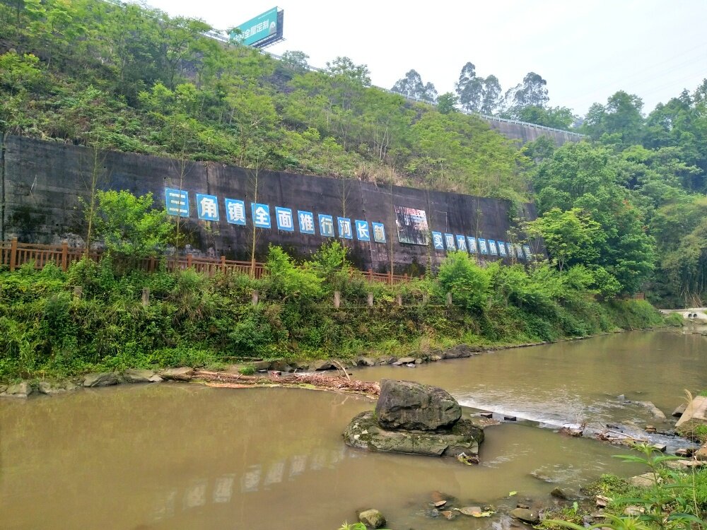 从横山支路,兰花园公交站下车开始,一直沿河步行到三角镇