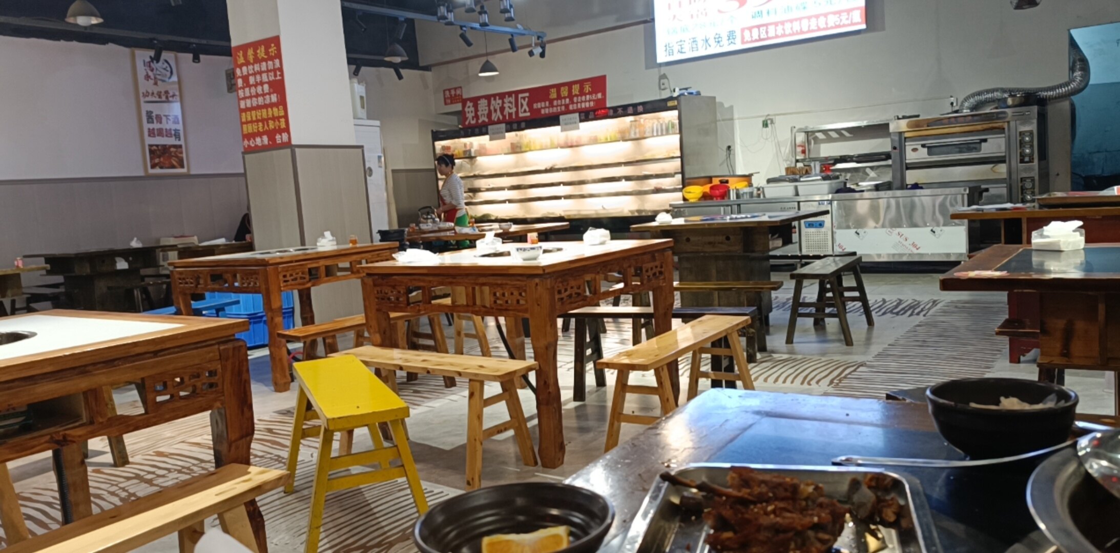 还没火锅好吃,虽然这也免费那也免费,去年我带着两个娃儿去吃。一个5岁一个10岁,去吃了100多,娃儿吃个啥嘛,光按到饮料喝,打着39一个人的牌子。这算那算要投50多一个人,不划算冻货占大部分。