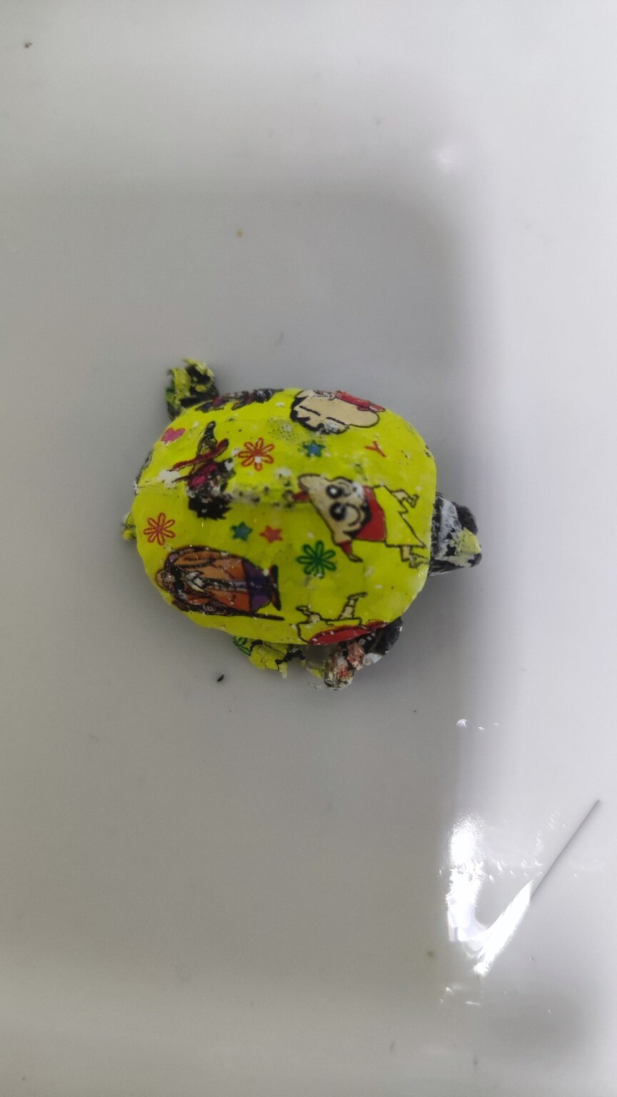 现在外头卖的那种小乌龟多得很全是画的还是贴的,我没注意看