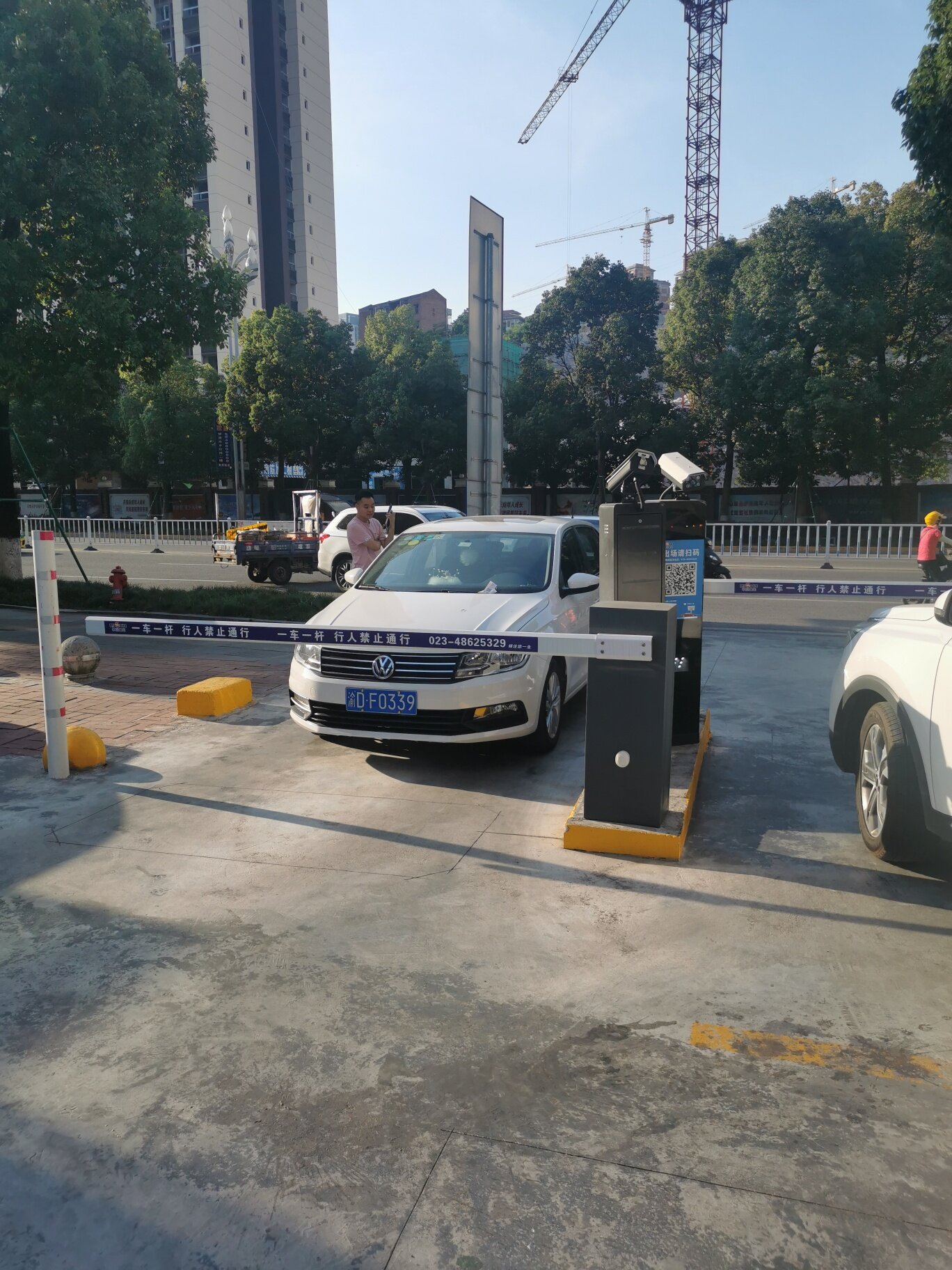 大概率是这车扫了码,没抬杆,故障了,然后电话了没人来处理,直接给堵门口的