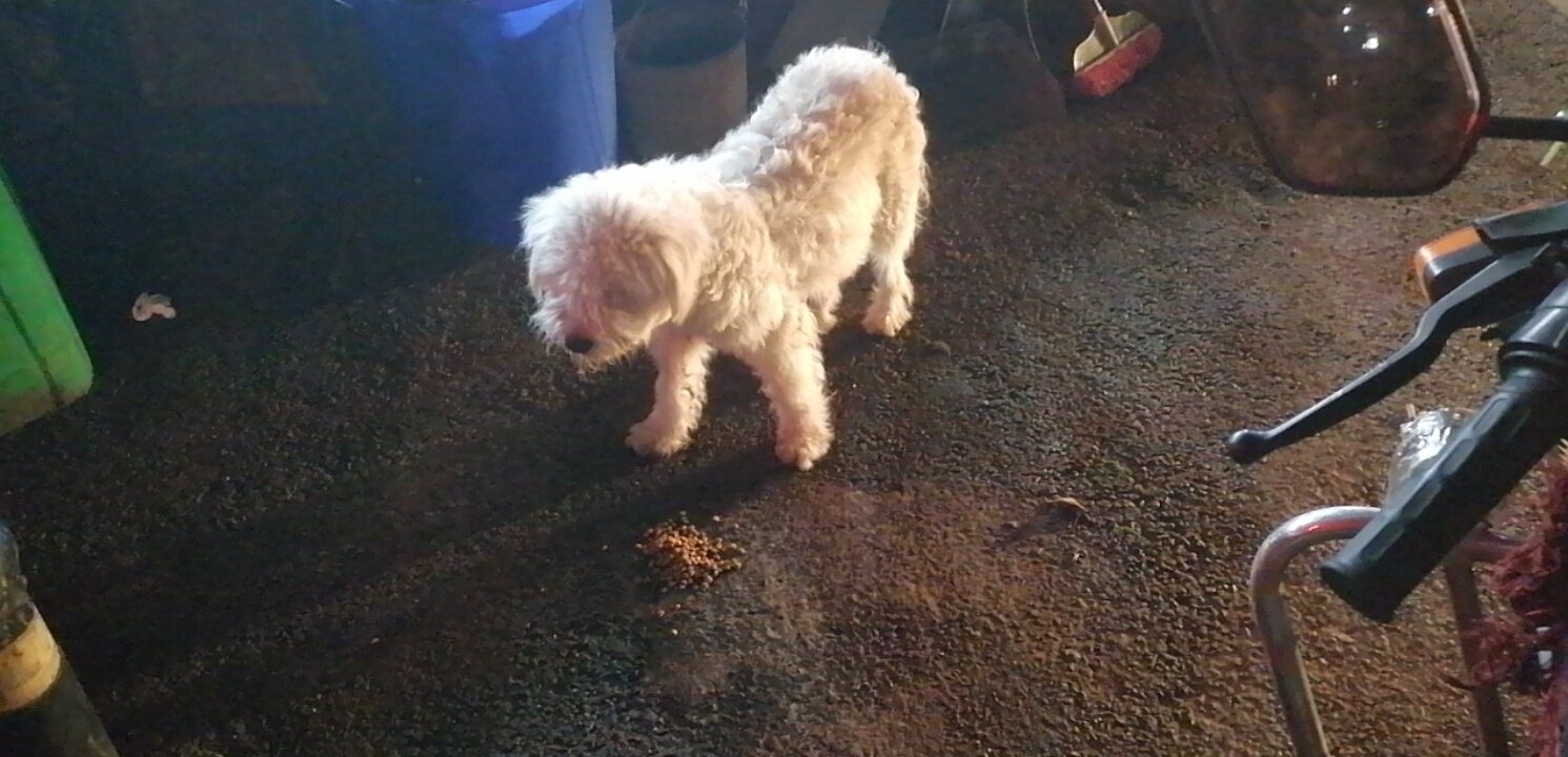 给他狗粮了,吃了3把,最后不吃了,去烧烤店头去了