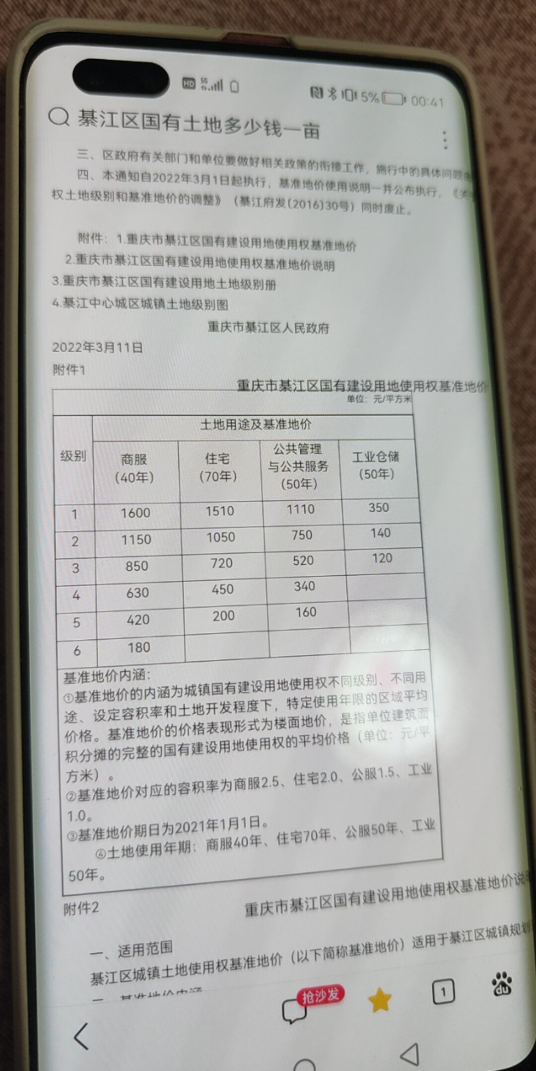 这是我们綦江出让价,一亩一级的也就一百万左右,一亩666平,拿三百平米来建房建个五层带层车库来说,剪力墙结构才多少钱一平?一层三户,就建个五层的按照高层价格四千多来卖都可以赚一倍