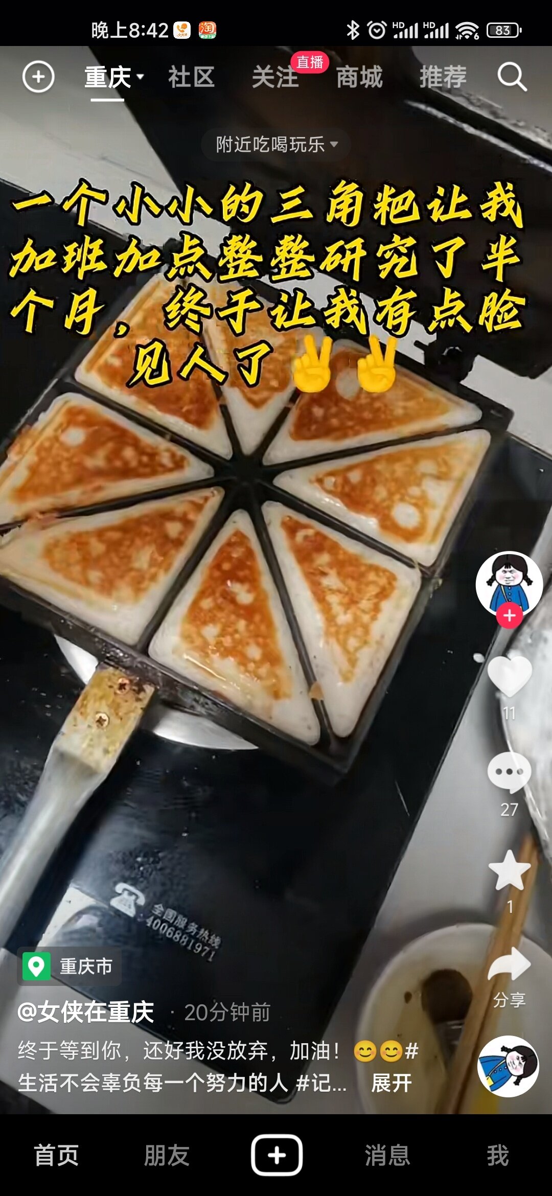 金科御景湾A区,那里卖的棉花糕就是三角粑的材料,味道还好些