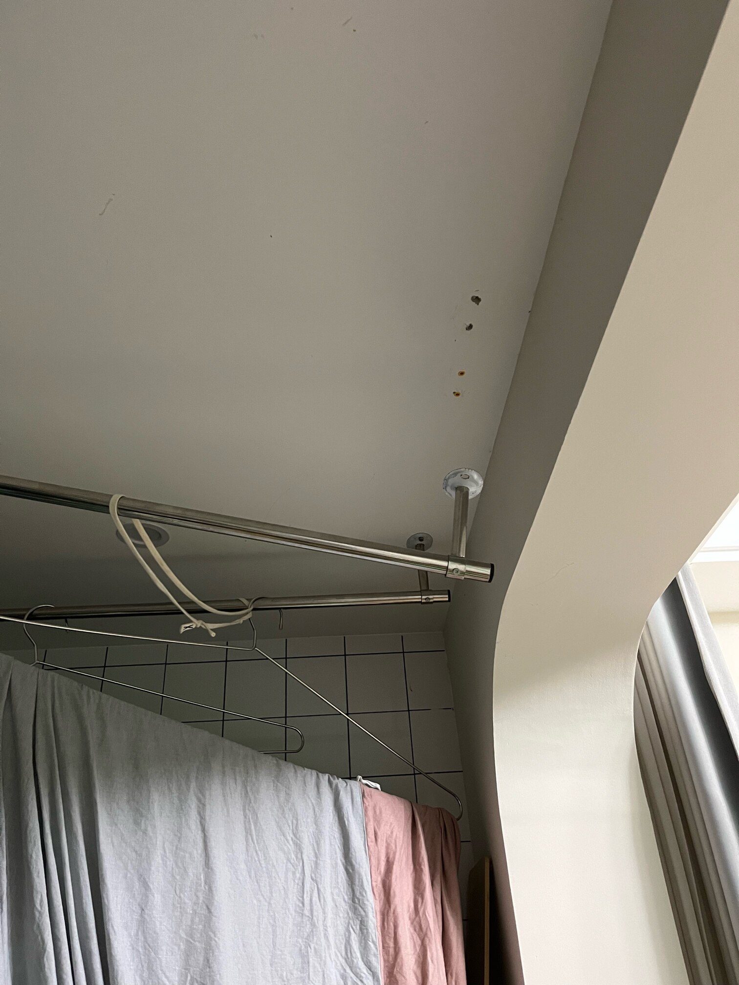 这种装修肯定都是这家做的撒。做的时候就应该给别人预留好。我找那家装修别人吊顶里面做好拍照给我,杆杆不要钱。我以后想装就装不想装就算了。主要我觉得做了内阳台晾衣服太难看。