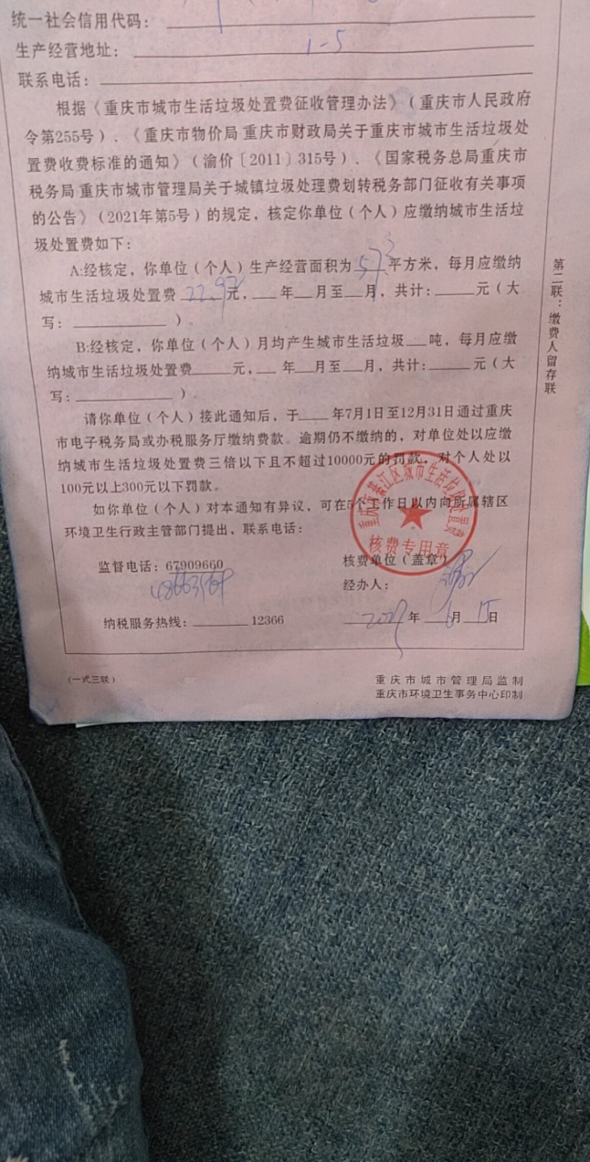 哪么多年门市都没有垃圾处制费,不知今年为什么就出来了