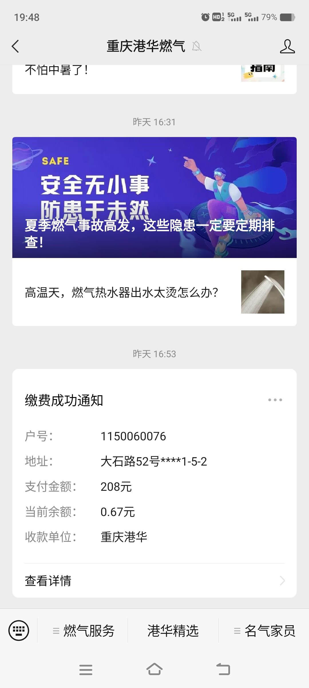 网上能直接缴,然后就近圈存,挺好的。我都这么弄几年了。每个月有6元的费用。以前去人工缴费也有这个每月6元的费用。好像是垃圾处置费。看余气量按下上面的按钮就知道余多少方就好。