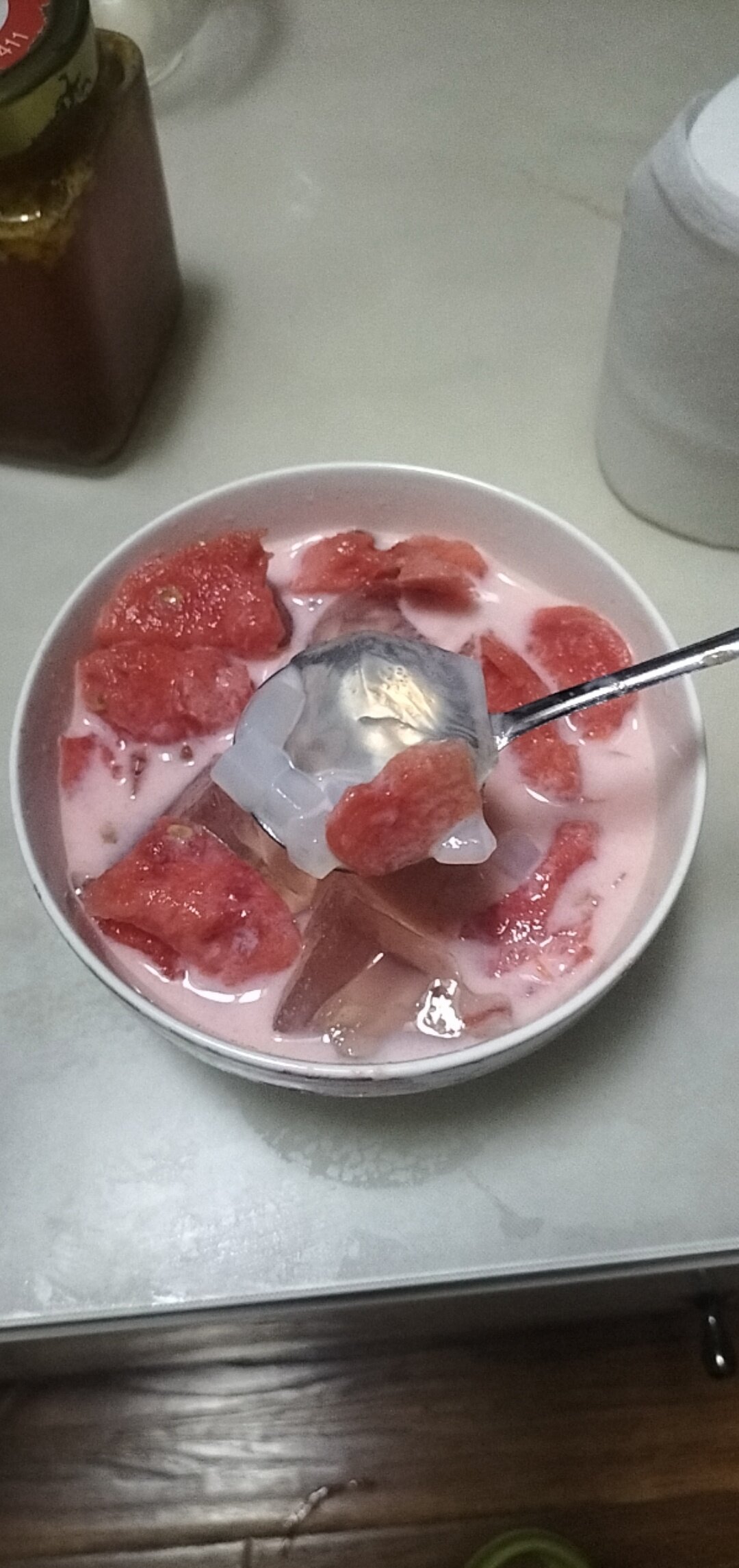 超市买包冰粉 开水冲拌 凉就成型了 加点佐料就Ok了
