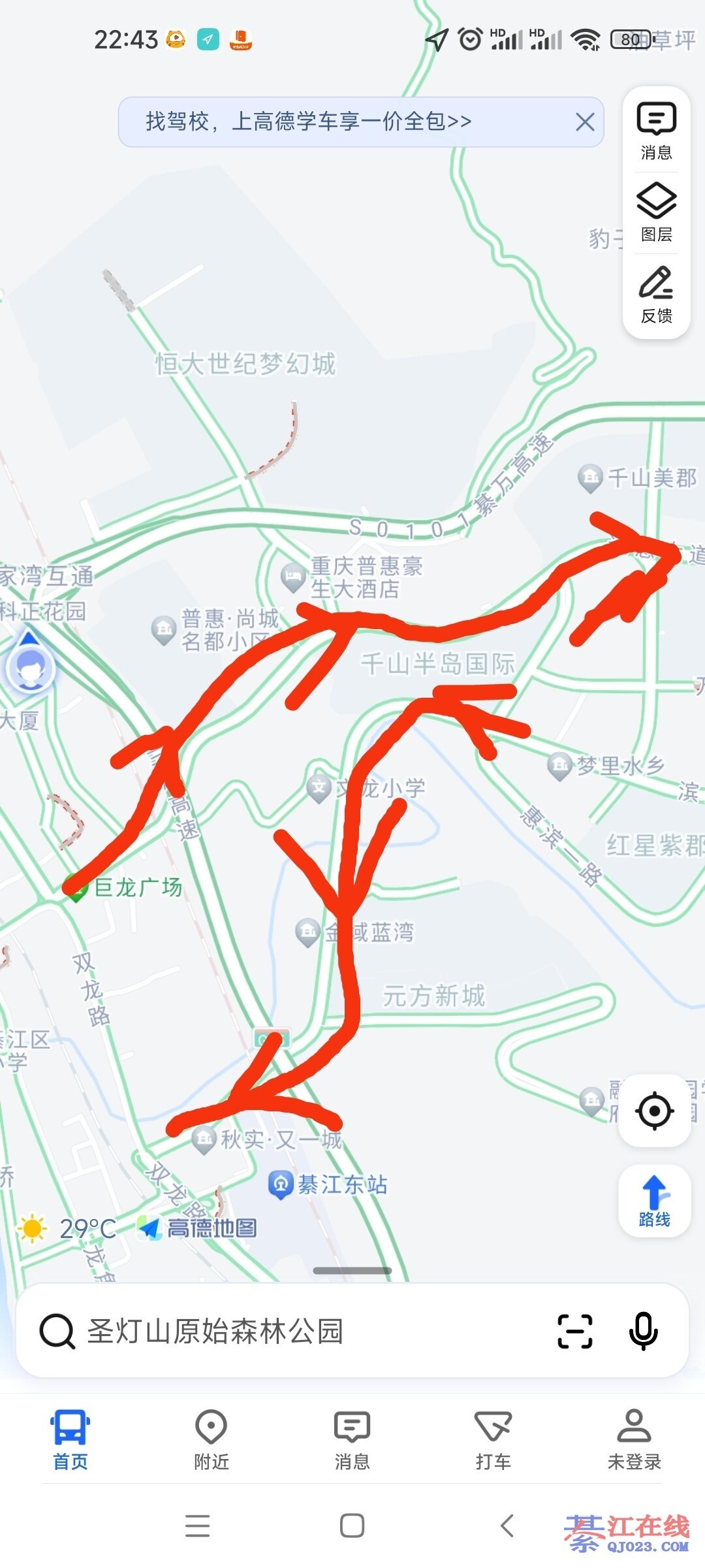 假如我走千山半岛的话,如果从綦江南下道,就只能往电力街转一圈,往普惠这边走才能过来哟