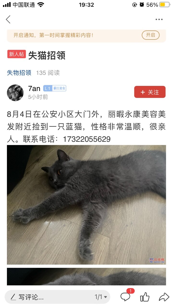 捡到一只,联系我17322055629