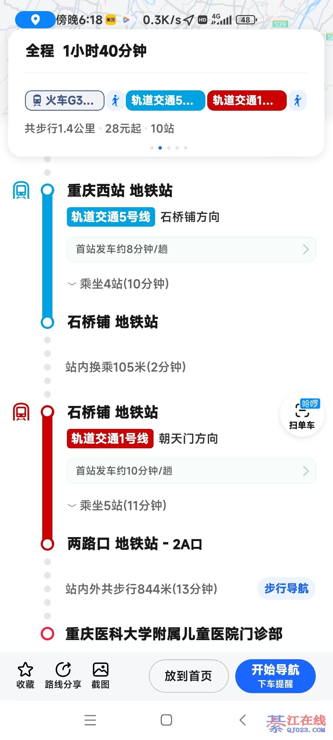 綦江东站高铁二十多分钟到重庆西站,不用出站在西站坐地铁5号线到石桥铺换乘1号线到儿科医院,我家娃娃都是在儿科医院做的手术。