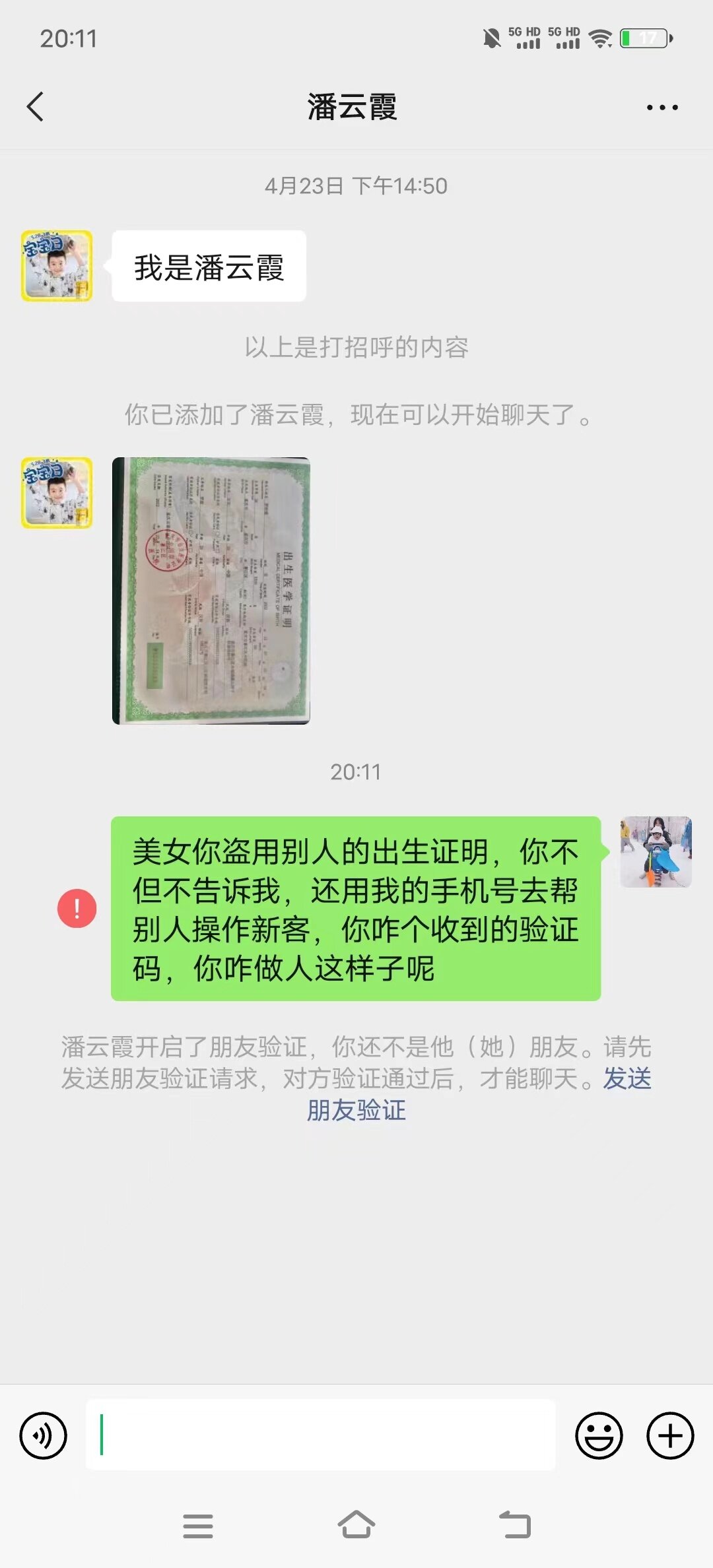 目前还没报案是因为除了奶粉这个事儿以外没有造成什么重大影响,担心派出所不给处理,但是就算不给立案也会去备个案,现在我们在各方咨询和找这个人,从我们目前掌握的资料,这个人确实盗用并传播了我们的个人隐私信息。当然如果最后查证清楚了不是她,我也愿意给她道歉,做人嘛,敢做就要敢当嘛,确实冤枉了别个的话也该给别个道歉
