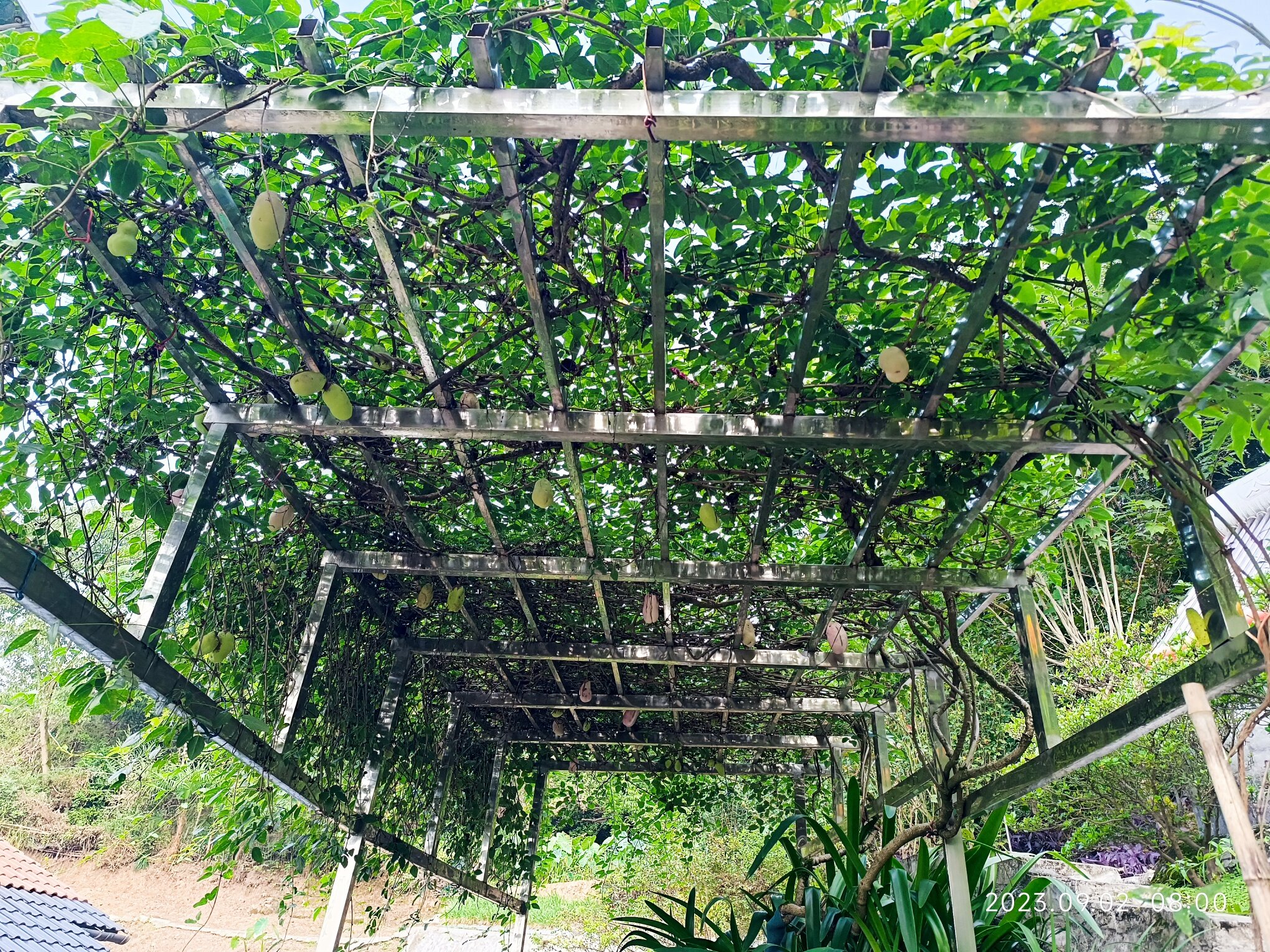 安是安逸,为了这几颗元老级别的八月瓜和九月瓜,我可花了2千多块钱做了这个架子