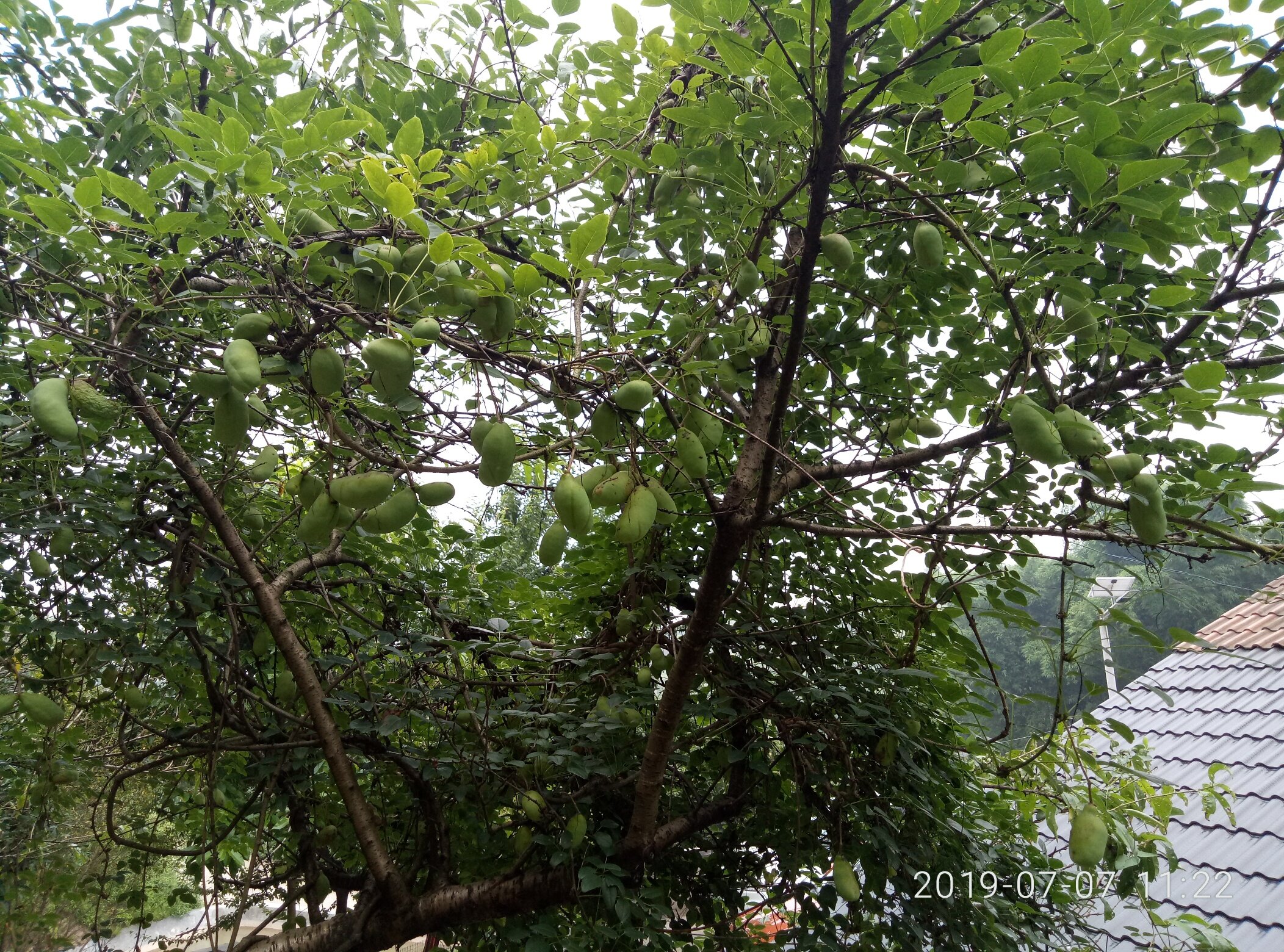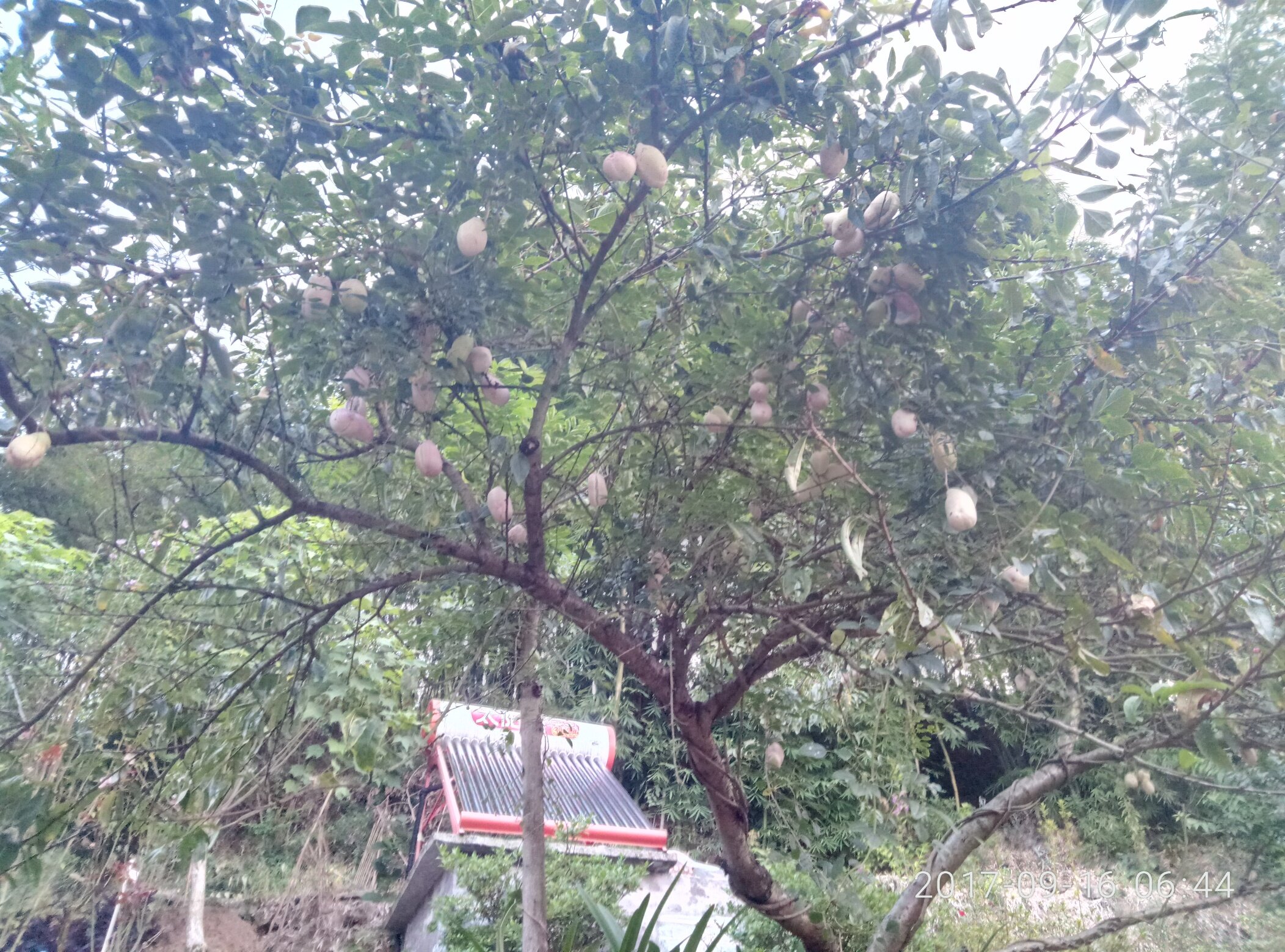 我石角的,你隆盛的,现在才开始熟,上个月还没熟,我这棵重新上了架的,所以今年要结的少一点
