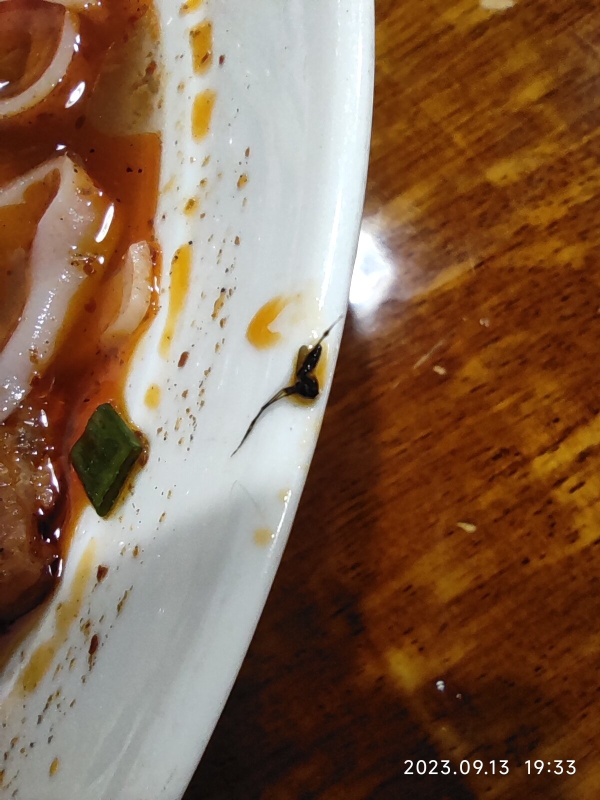 没有吃完,钱也给了,给店家说了还看了一眼然后就当做没发生一样。我觉得这种态度确实不好,我花了钱不是去找罪受的。