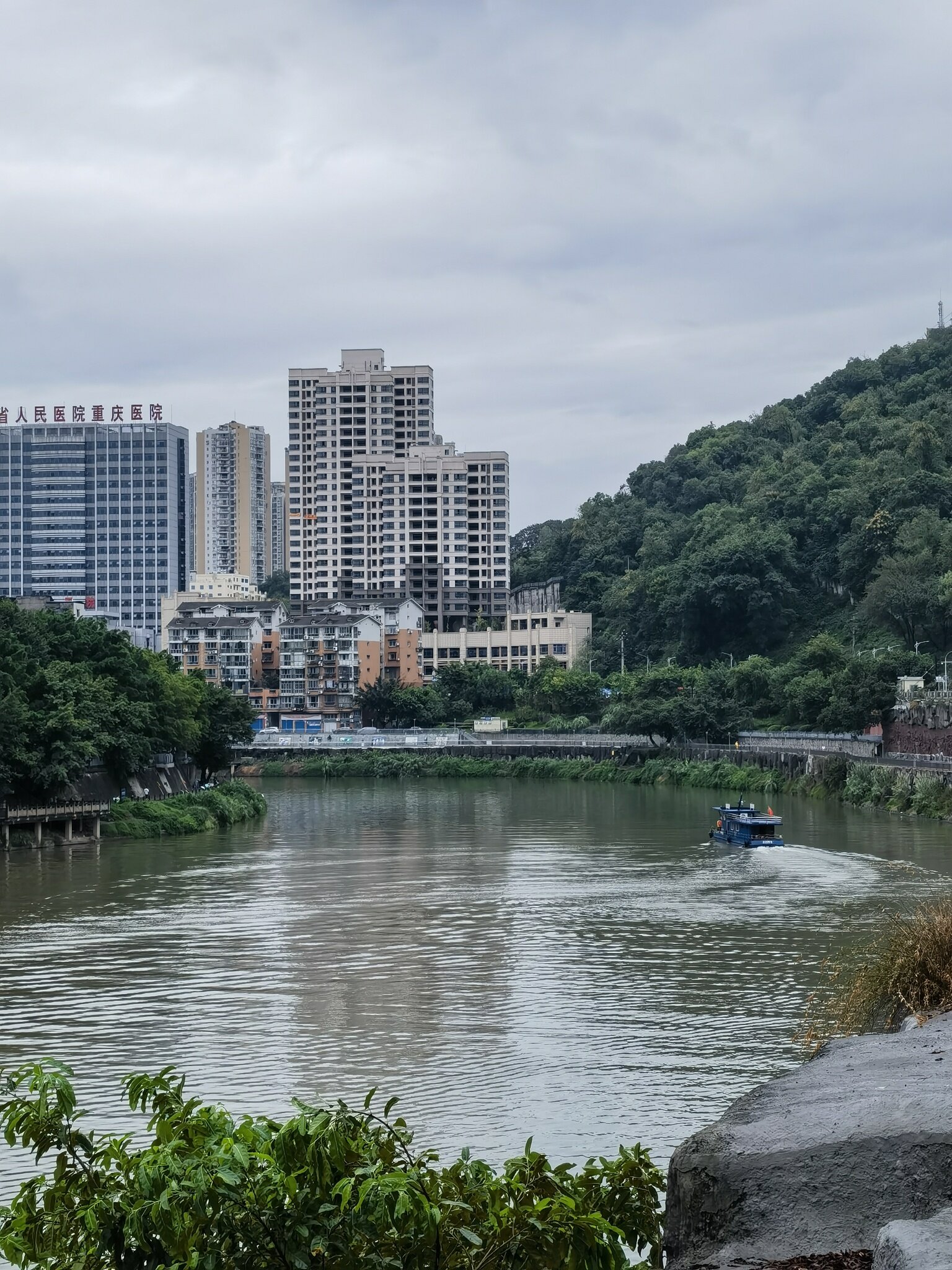 是不是涨水了,看起好像有点黄,有人钓鱼没得