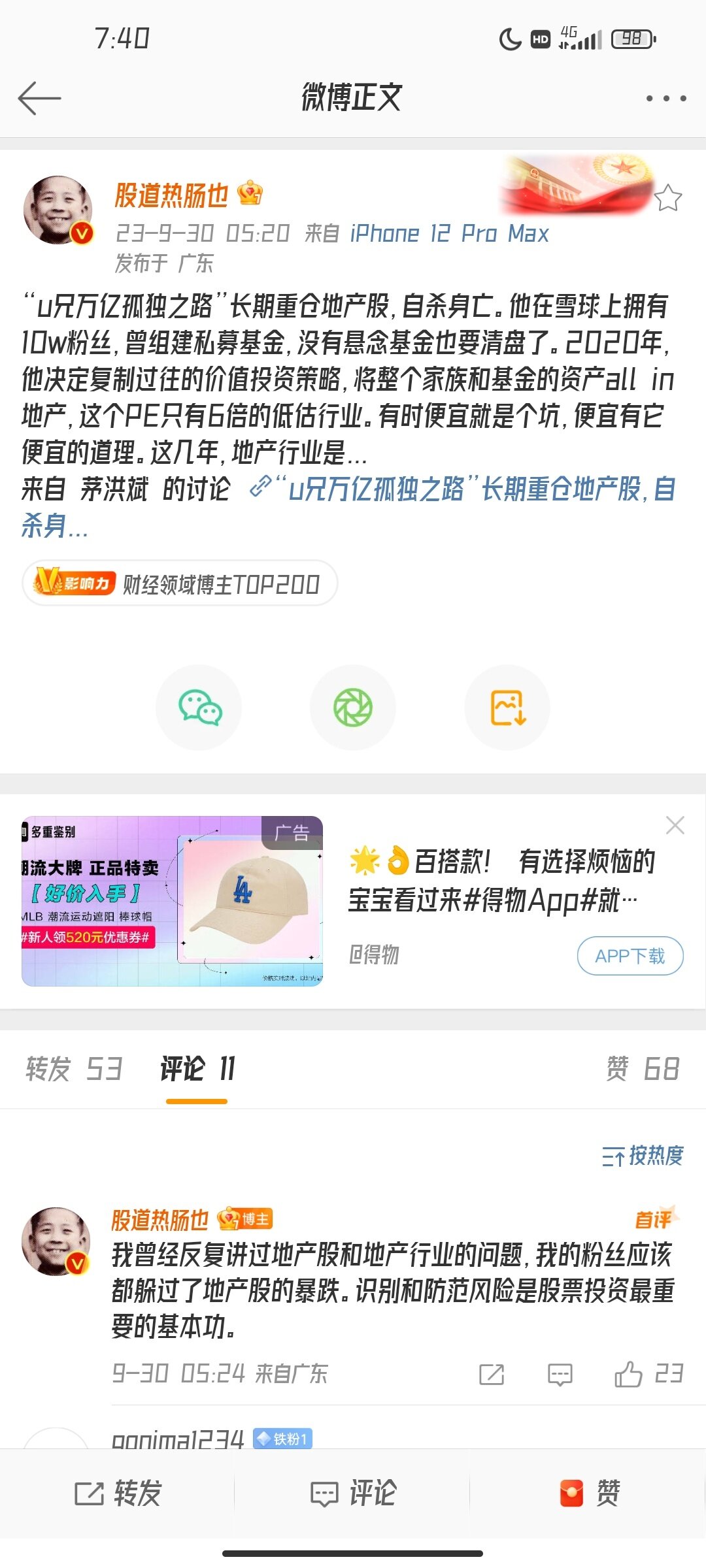 一个可持续的医药金,都亏70%,80%多。何况不可持续地产。