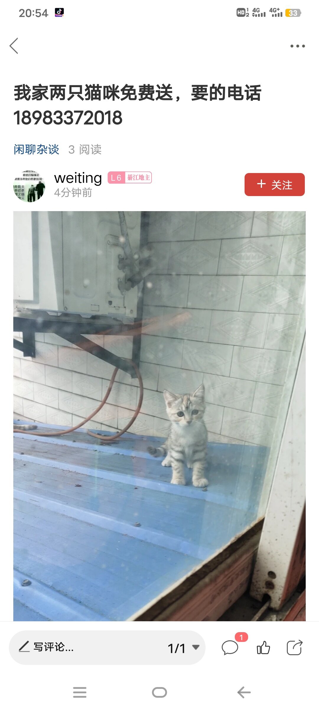 我晓得一个她家有小猫要送人的