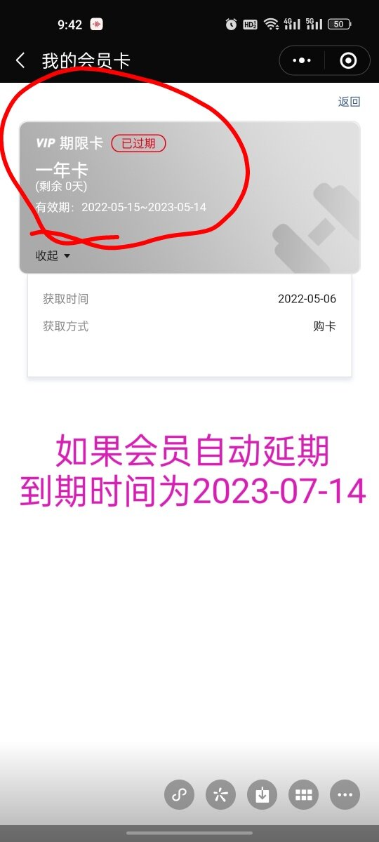 因为他们没有告知我自动延期的。我一直以为我随时都可以,哪怕我会员过期了都可以延,我因为工作忙,很久没去了