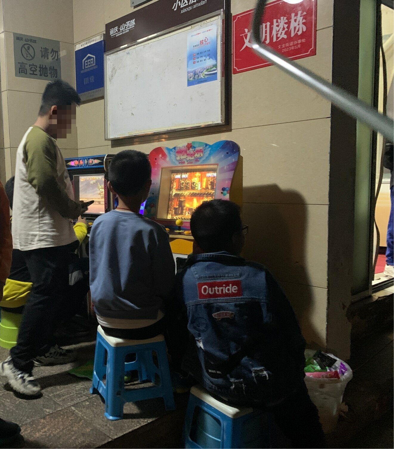 不具备退币功能,也没有换钱,不属于赌博机。可以视为距离山予城幼儿园不足五百米摆设游戏机,向区教委和文旅委举报