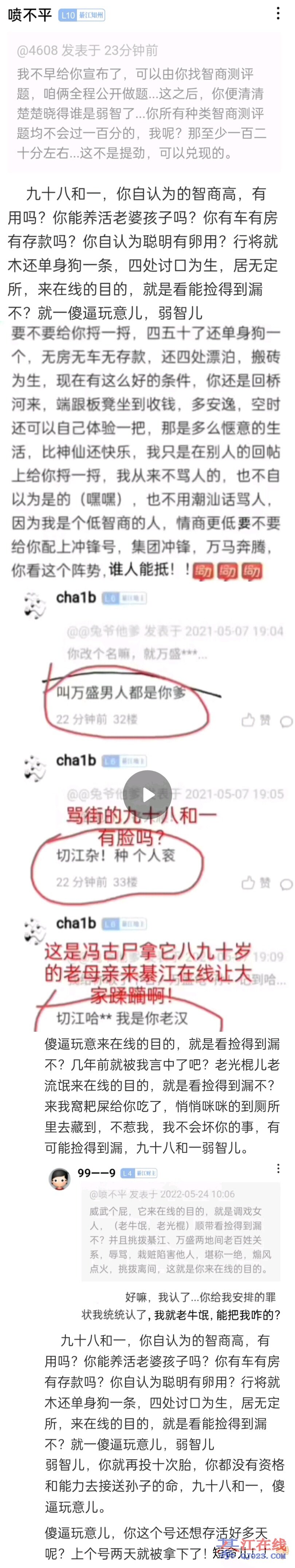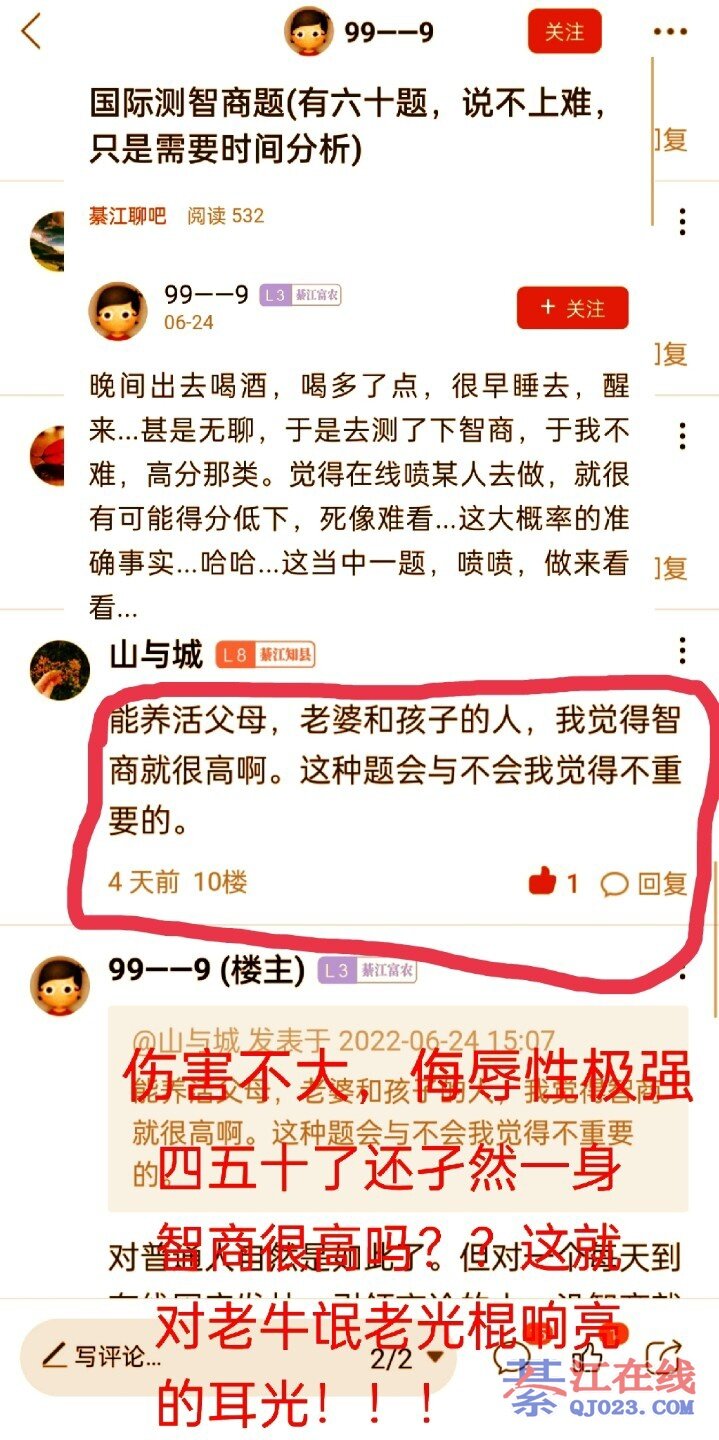 高??高个卵!你有房有车有存款吗?能养得起老婆孩子吗?nm八九十岁了,你给她买过新衣服买肉买米吗??行将就不还光寡孤独一颗,光红苕一个,还好P脸自称智商很高,实际上就是三十而立四十不惑五十知天命六十花甲七十古稀总计年,认识字吗?一天只会满大街狂吠,九十八和一!这一串数字知道是说的什么吗??