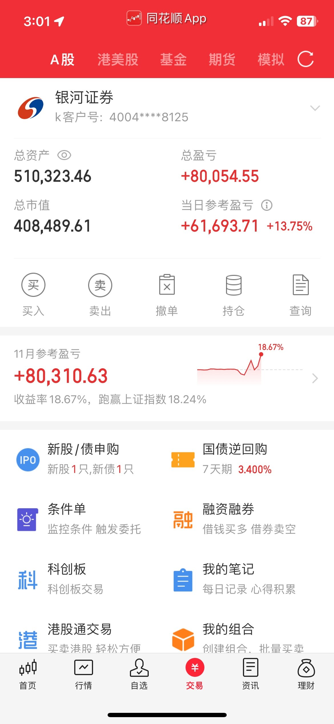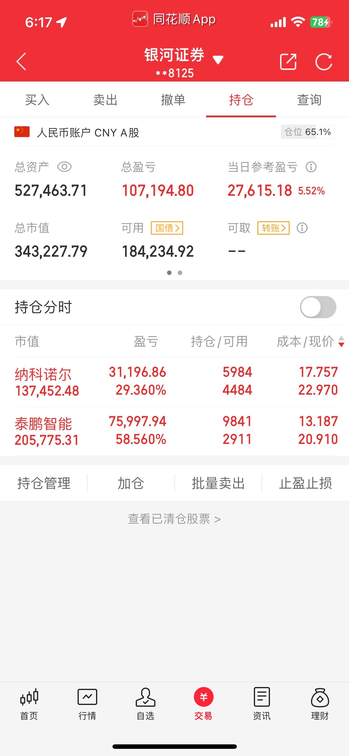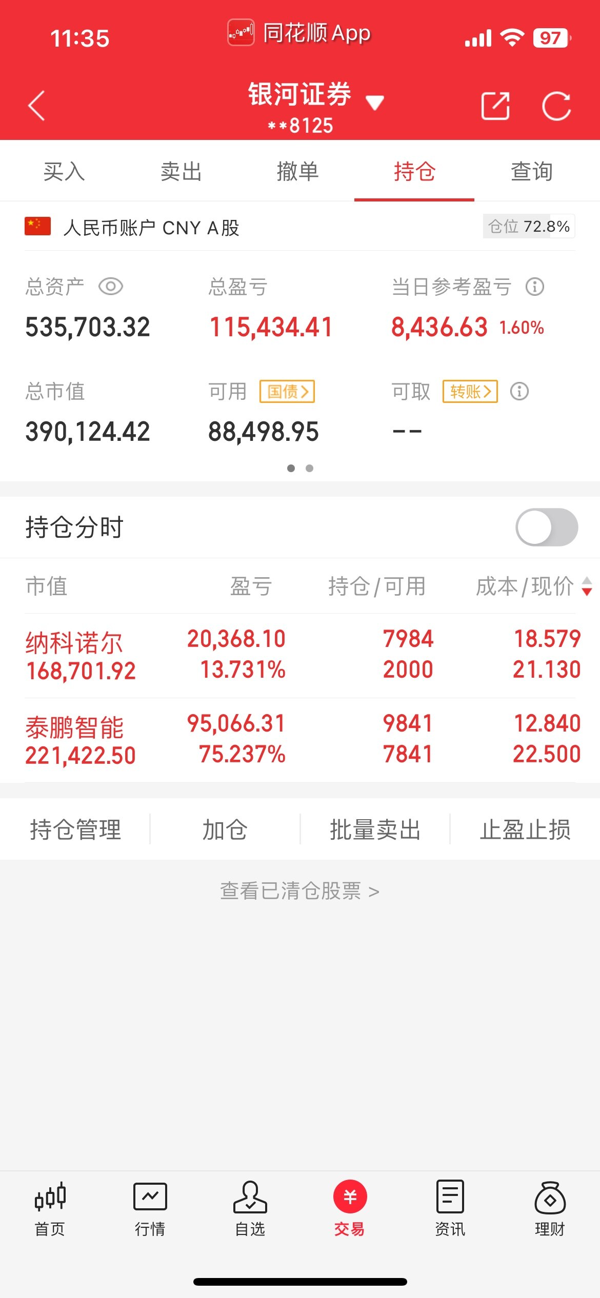 因为有底仓赚钱,所以心里才不慌,上午的时候,也亏了6个多点,没有底仓的话,估计很多人都要割肉了,所以才不建议前期没有利润的来北交所,太考验心脏了,今天我又减仓了些,但是没有高点抛完,还是贪心了
