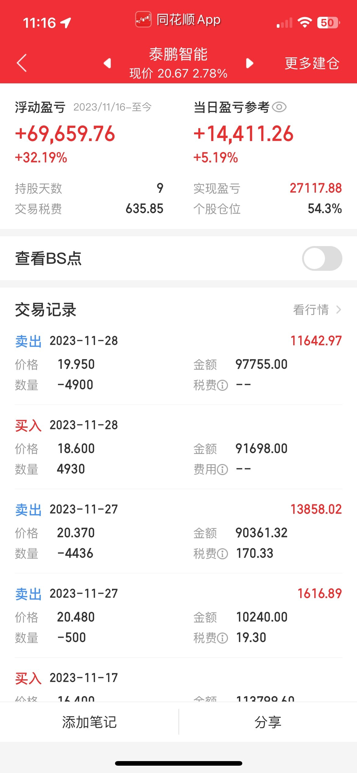 今天早上底部还加仓了,然后19.95把加仓的卖了,反正我的成本够低,所以也不是太着急卖,慢慢出货吧