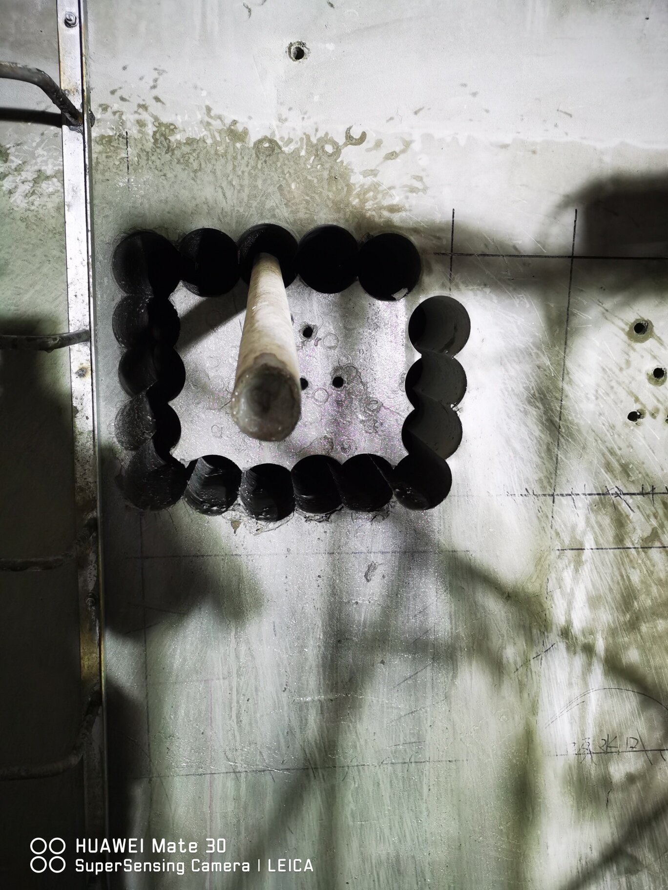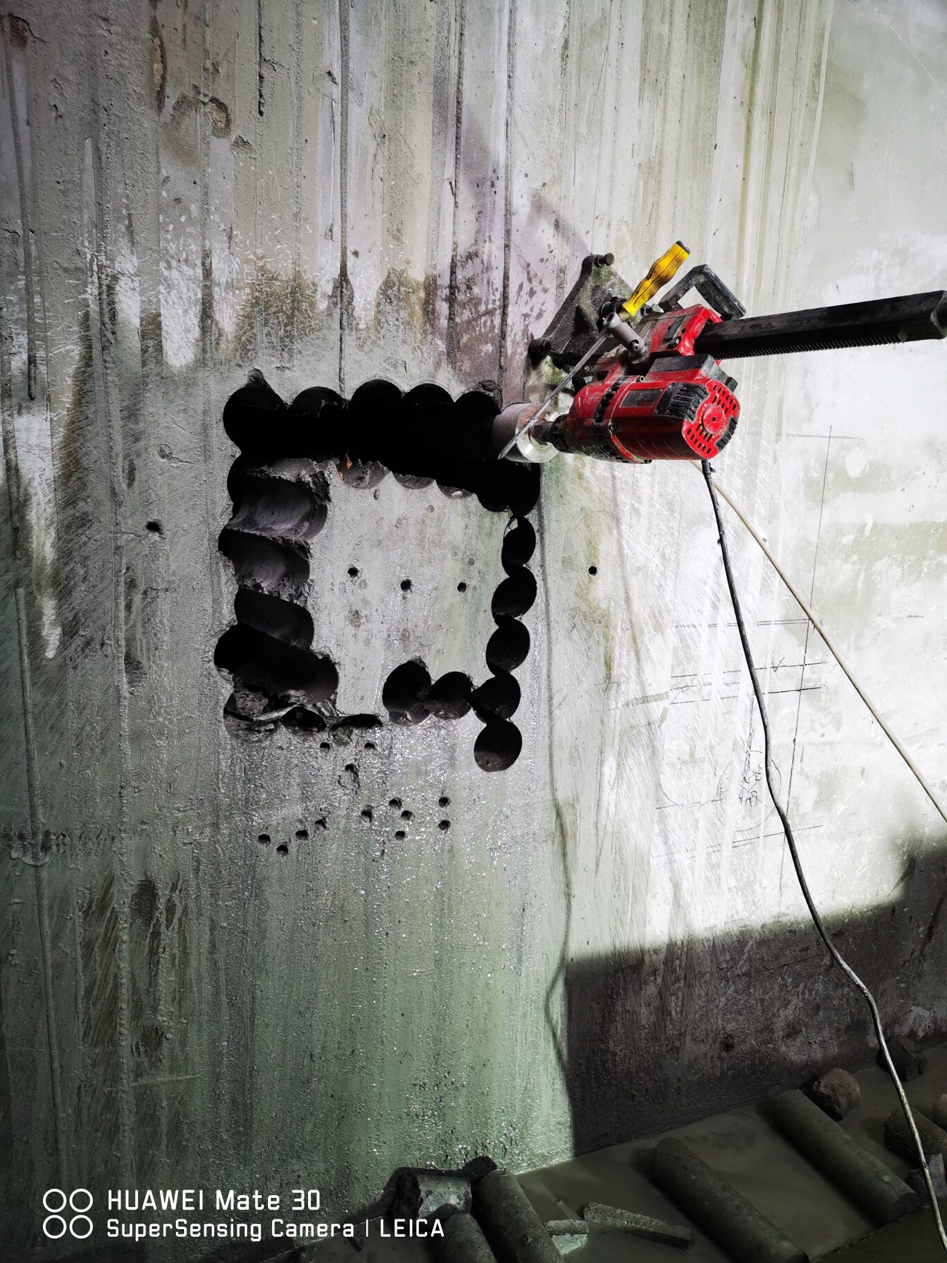 看见了预埋管,居然是事后打洞来预埋,你这照片遭看到起了这工地验收通不过哟