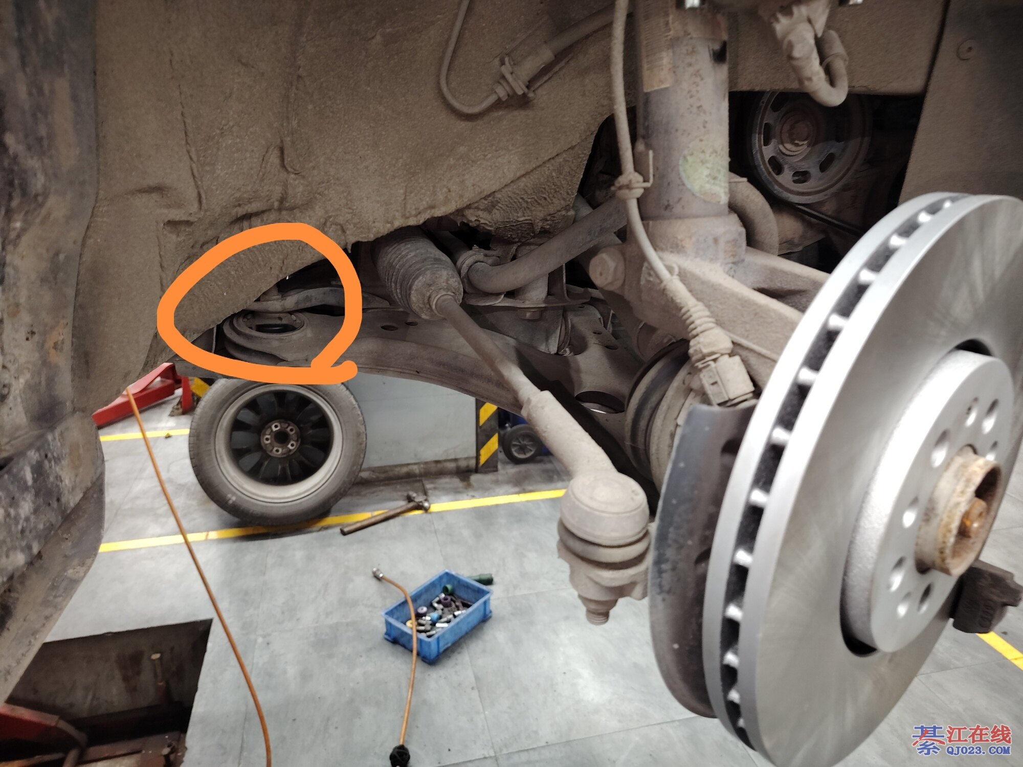 专业的,刚问了换后减震胶套和臂4个胶垫和4轮定位要差不多七百块钱