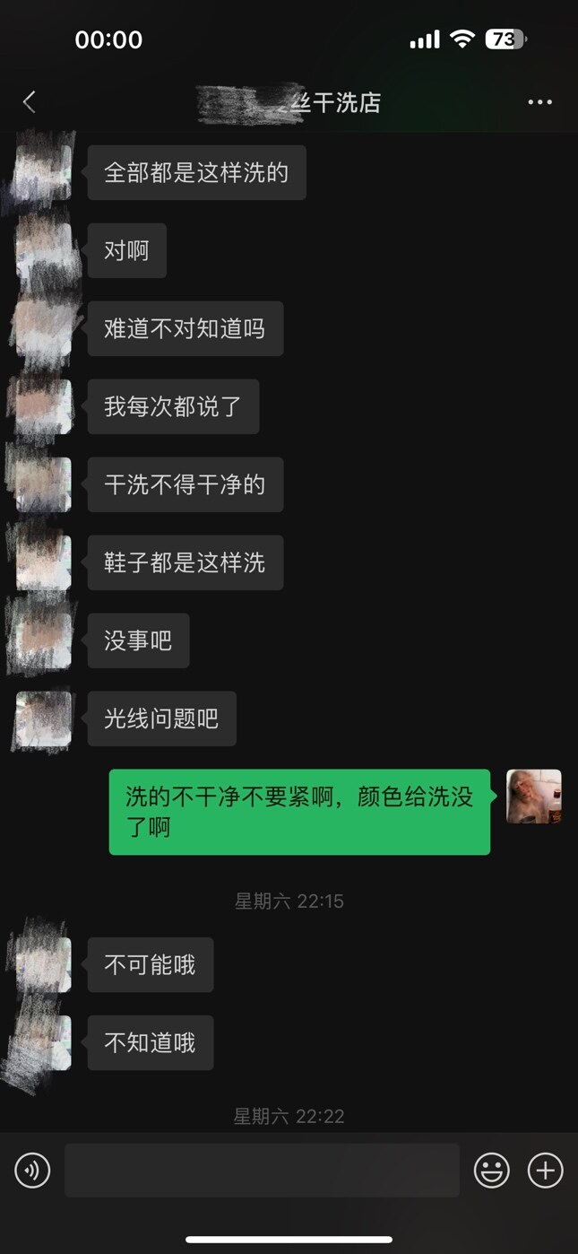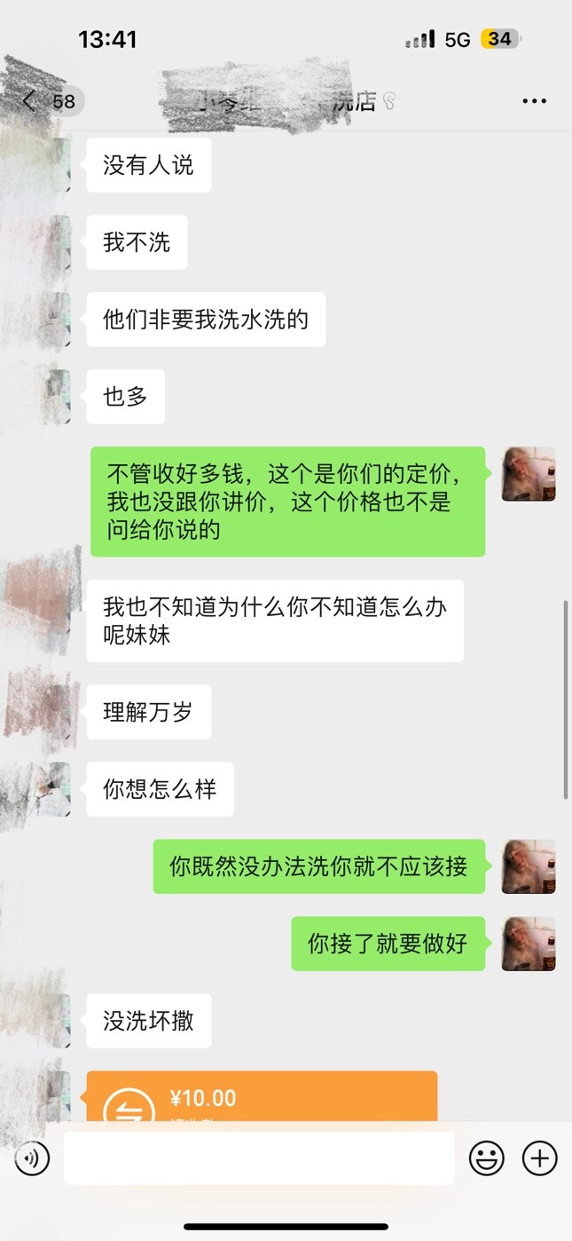 我也是在她家洗衣服还自己发红包给她介绍小区大群里面人去她家洗衣服,最后到我自己拿到衣服后只能自认倒霉,衣服没有洗干净几千块钱的衣服跟我水洗,心里是不高兴不开心了