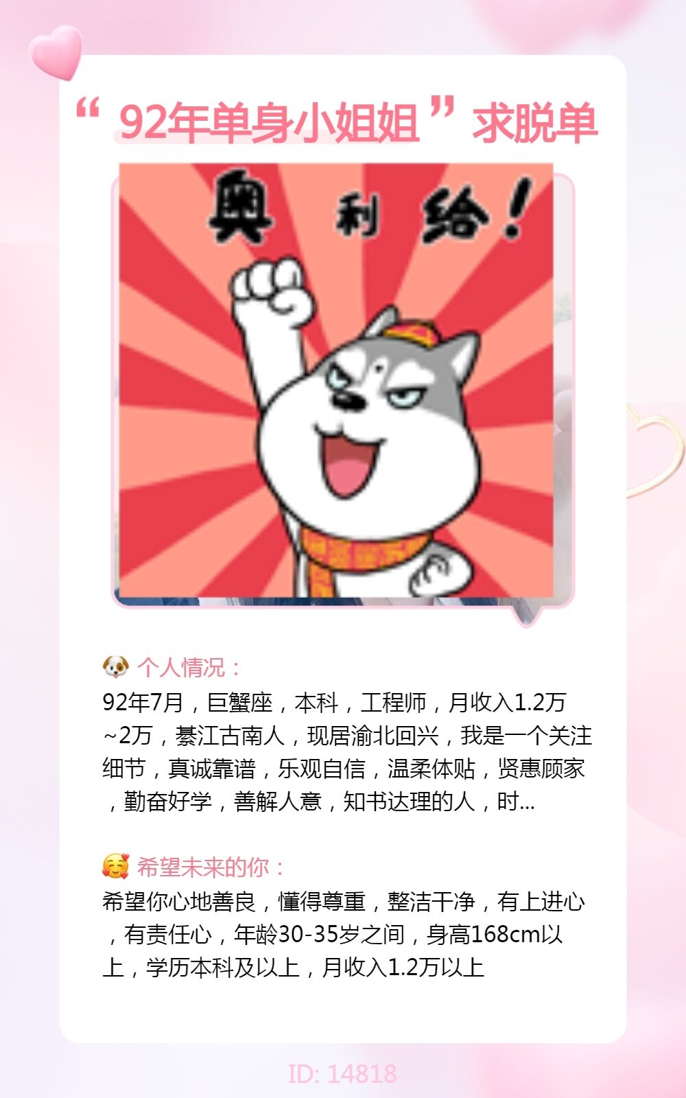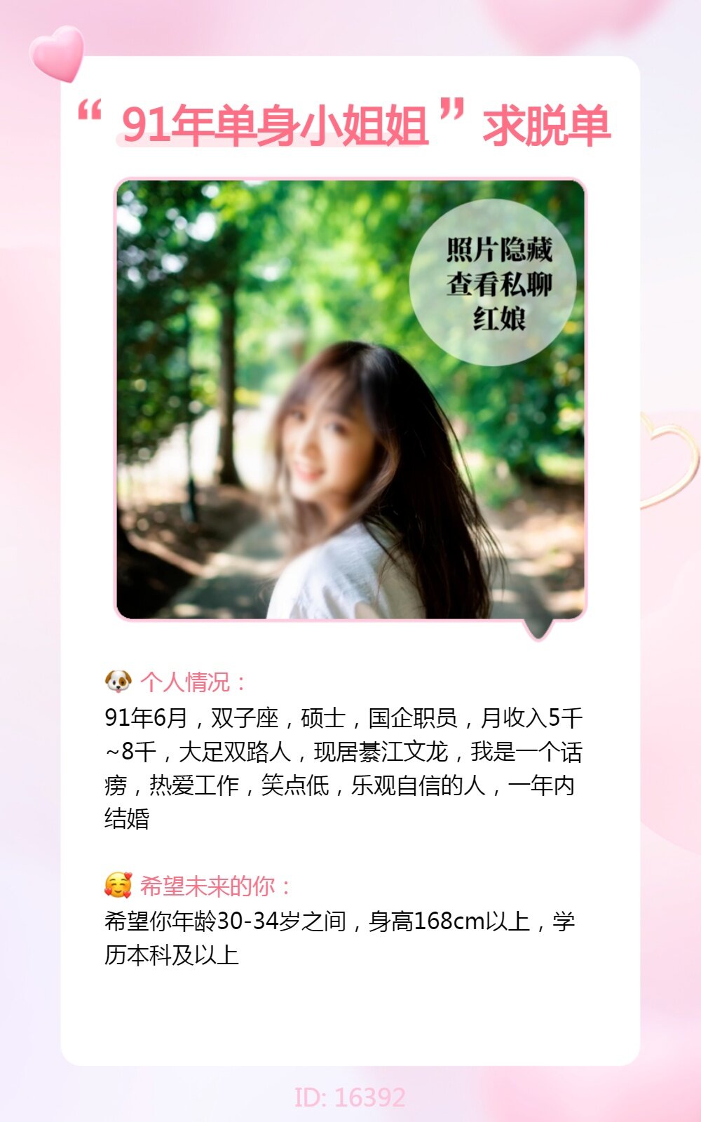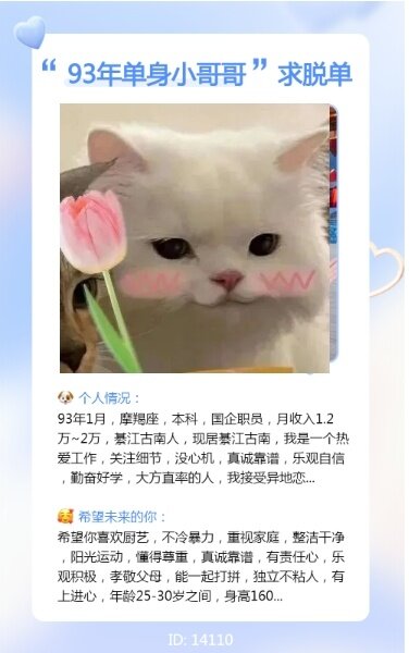 优质的别人都排队抢,还轮得到在这上面来花钱相亲。呵呵
