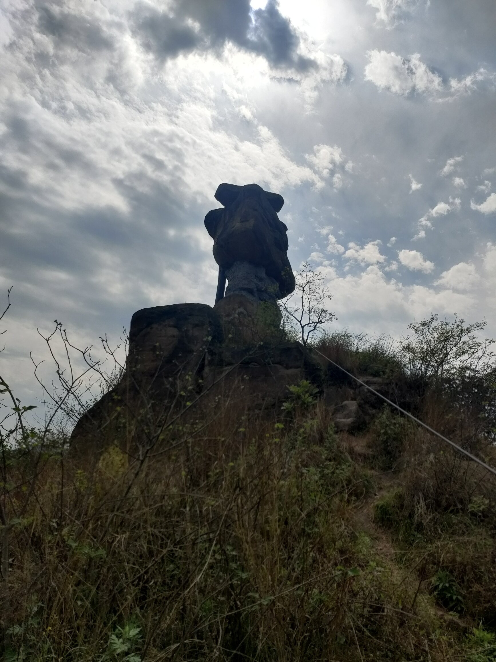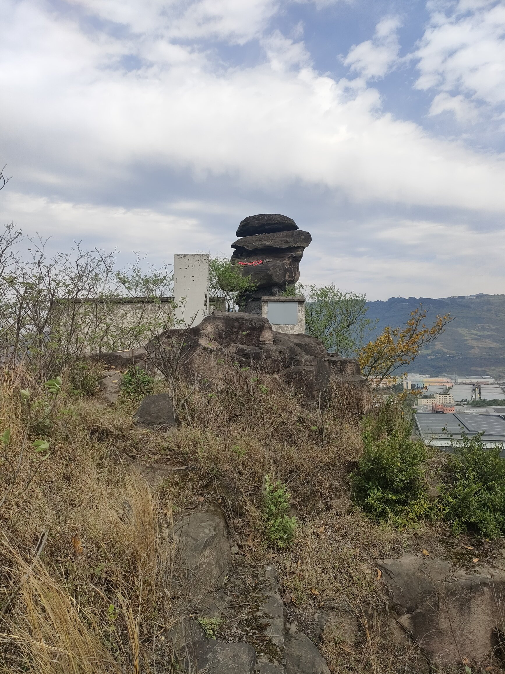 桥河这个飞鹅石己经被人为的用水泥敷住下边的基座了,失去了天然的险峻。万兴上边的香炉石,才是自然的景观,上大下小,就是不倒。