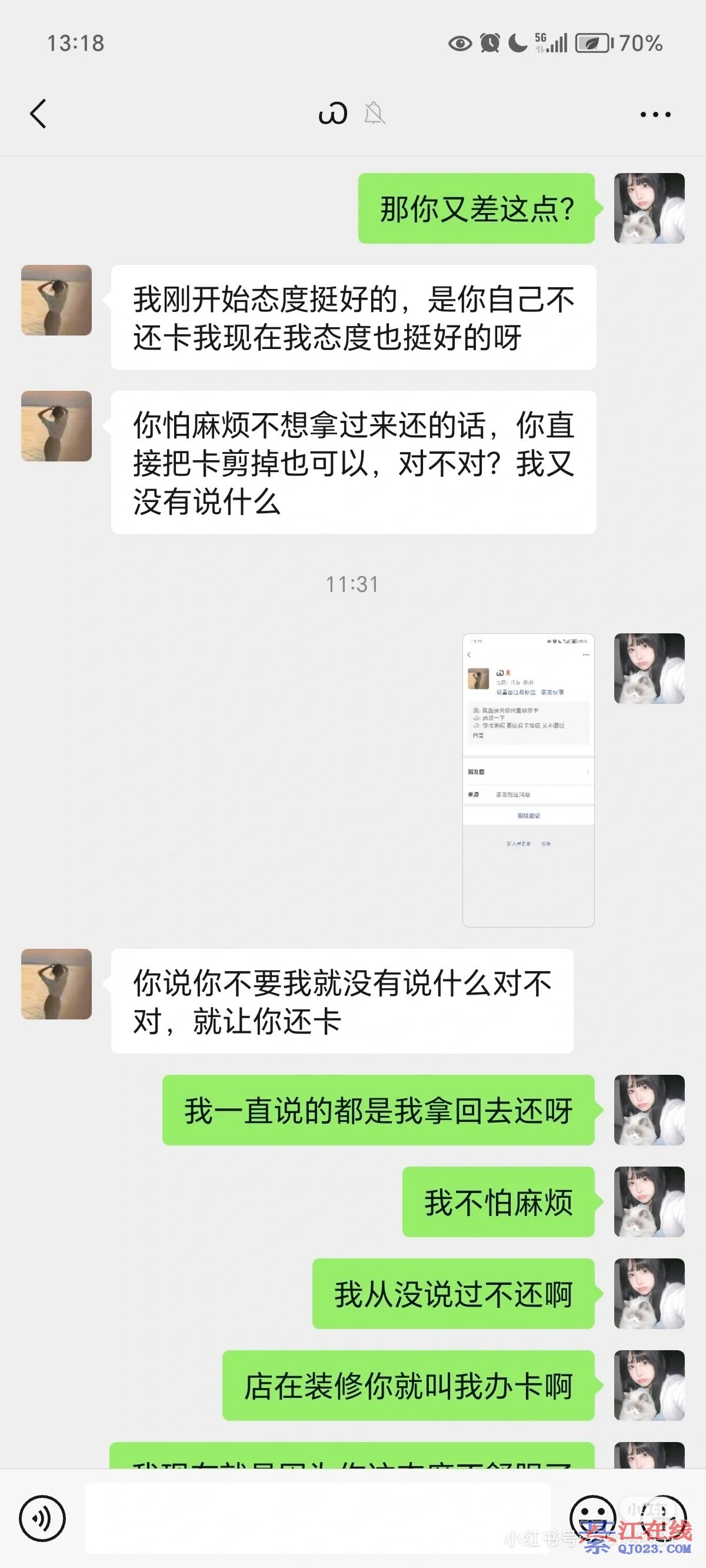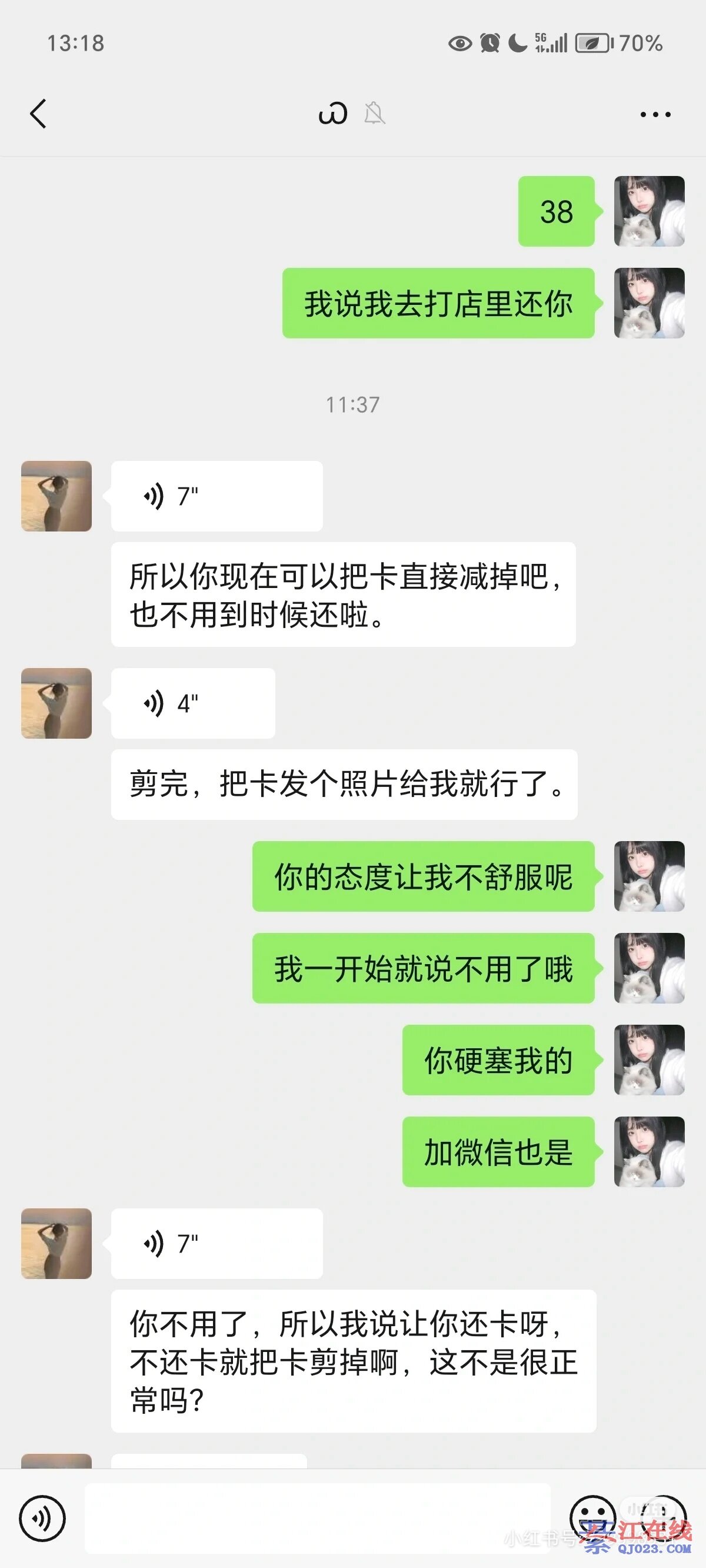 两个讲普通话的女娃儿,我喊我朋友不要她的卡,她还凶得很,问我凭什么给别人做决定。跟她两个一顿毛决,灰溜溜的走了