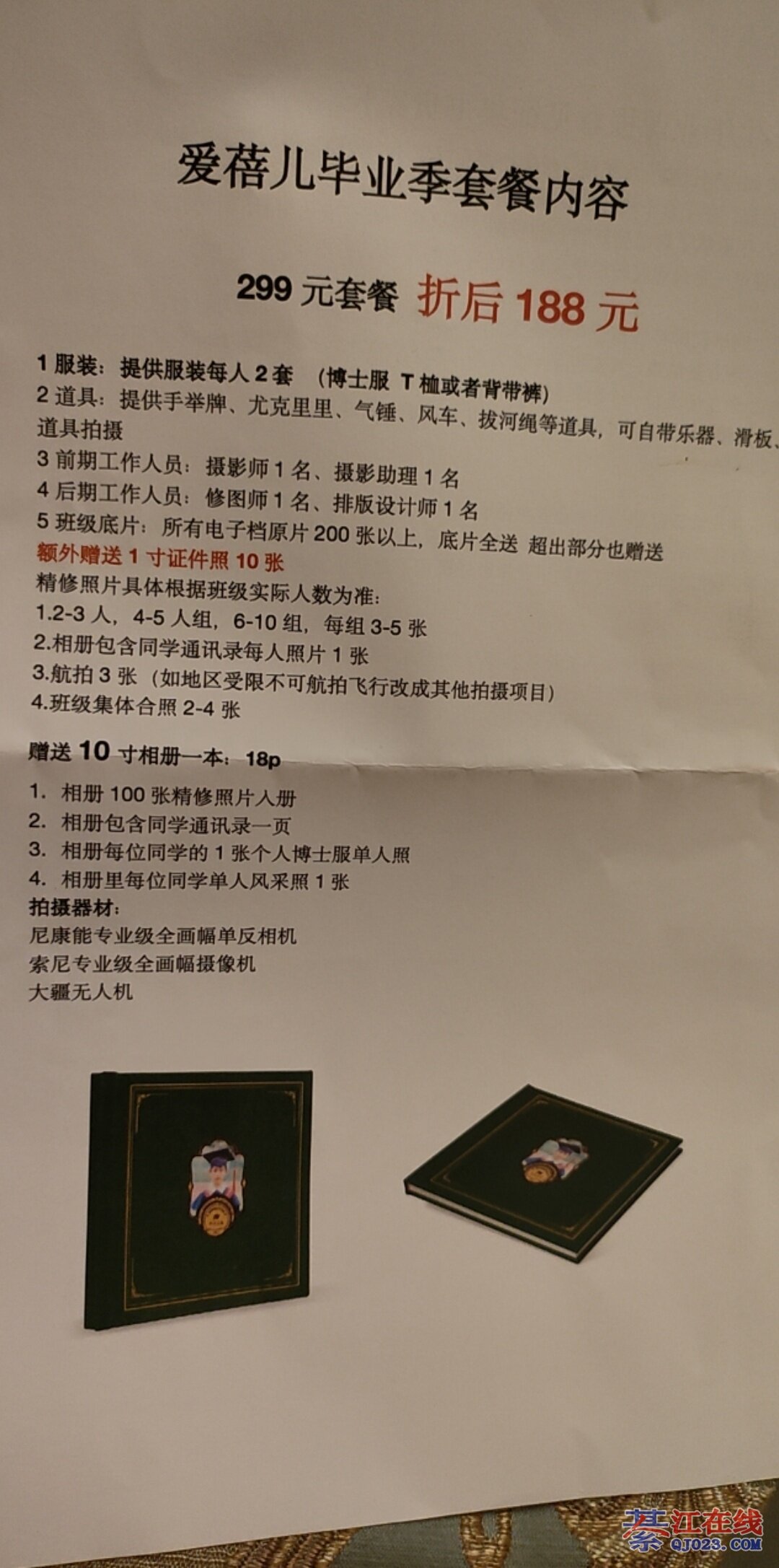 生意都做到学校了啊?在这个店拍了2次 说实话只是自己不会用单反 后期加个滤镜而已 第一次拍了600后面喊加照片 没加 第二次拍了700也是喊加照片 没加 底片太贵了 再也不会去拍了