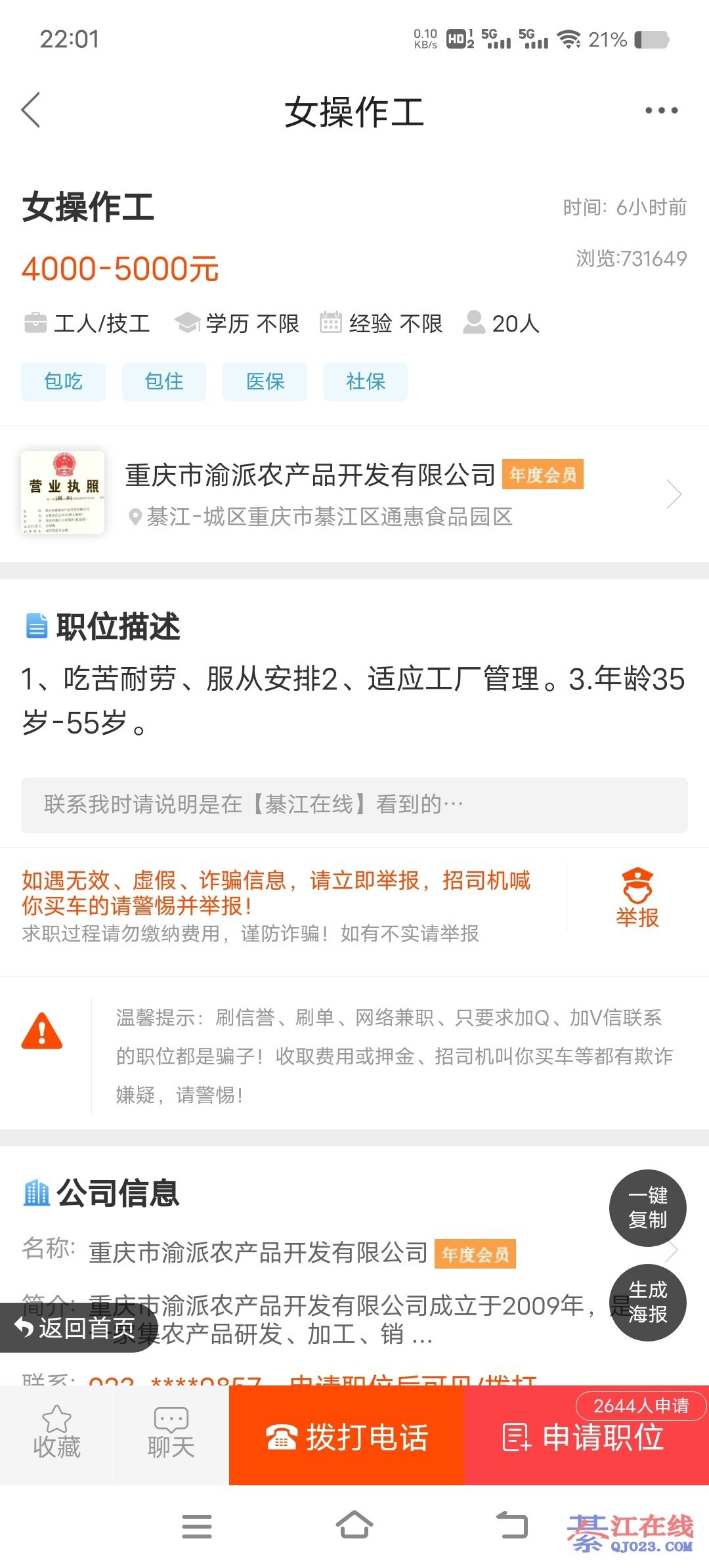 壹合食品厂现在在招白班,12元一个小时,本人觉得这个厂不错,就是是临时工。