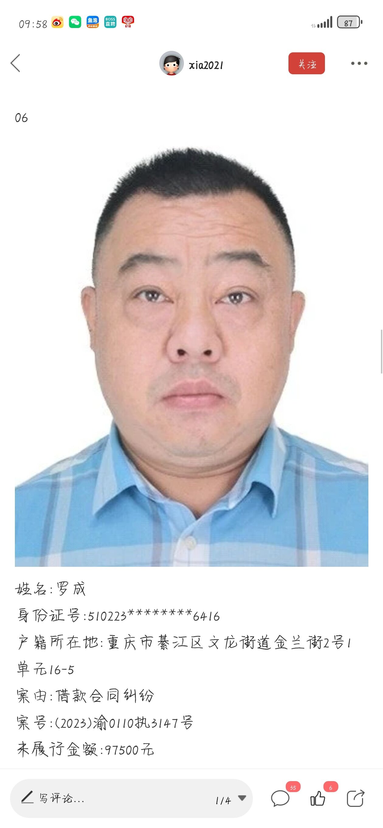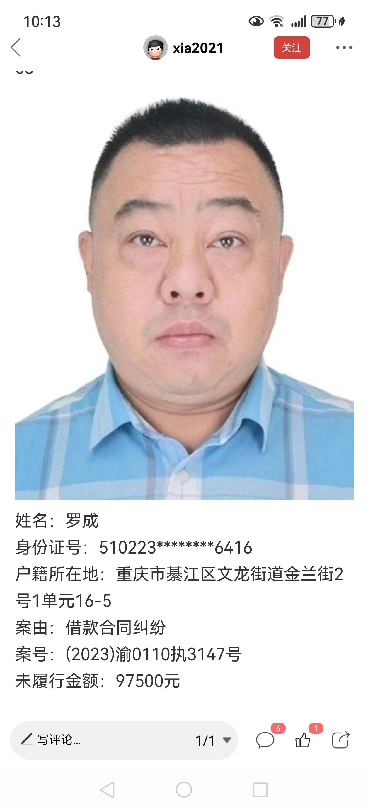 上失信人员名单了