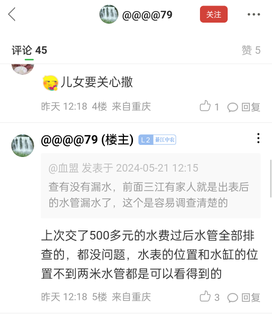 查有没有漏水,前面三江有家人就是出表后的水管漏水了,这个是容易调查清楚的