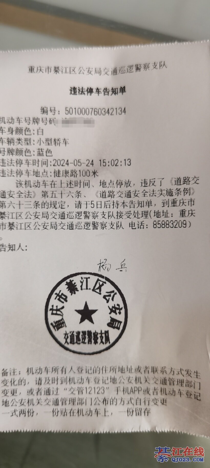 停车在旁边买个东西出来,离贴罚单1分钟的时间。交警说不能取消。他说他们每天有贴罚单任务。搞綦江创卫。綦江区又要凭什么等级了吗?