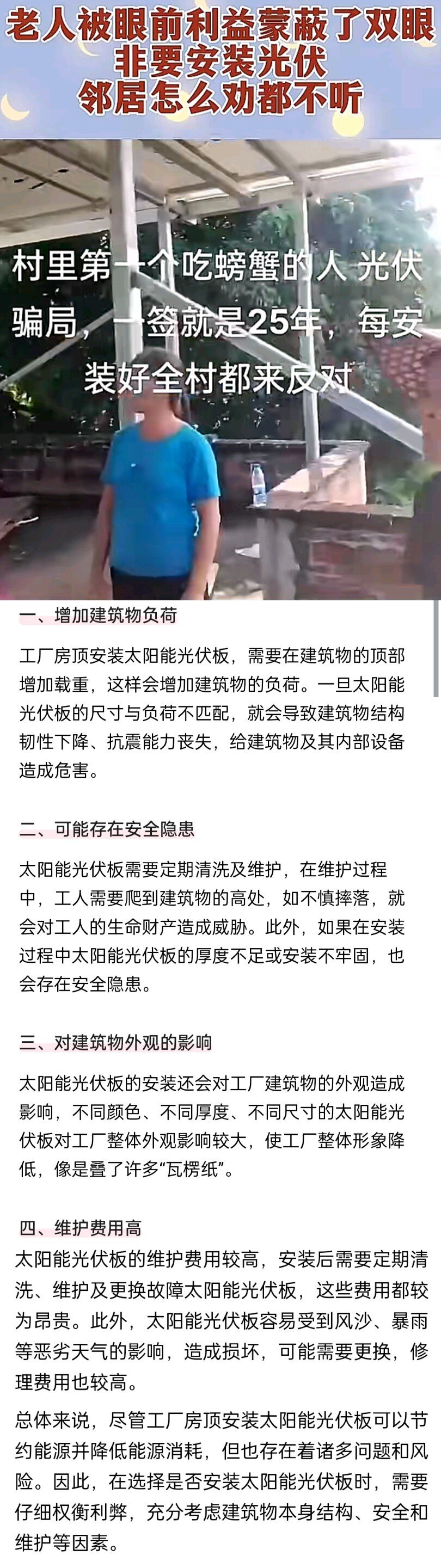 你确实是个大聪明,居然会用网络看,只可惜你没有经过分析就去相信,该怎么说你好呢?把事情了解清楚了再说,建议你真不要提起半头就跑,你看你说的4点,基本全都是片面之词,甚至还有些错的离谱。先多了解,就像别人说你不懂,你要找判断自己懂不懂再做定论。沿海地区房顶上装了十多年了,别人是比我们**吗?也没有见人家出问题,提出这些问题的人,绝大部分是吃不到葡萄说葡萄酸的人,你自己分析分析吧