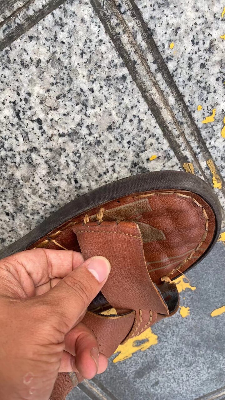 我补凉鞋也是自己补,用钢锯片烧红,在中间停留几秒,再把锯片一扯,死死按住就算补好了,好简单嘛