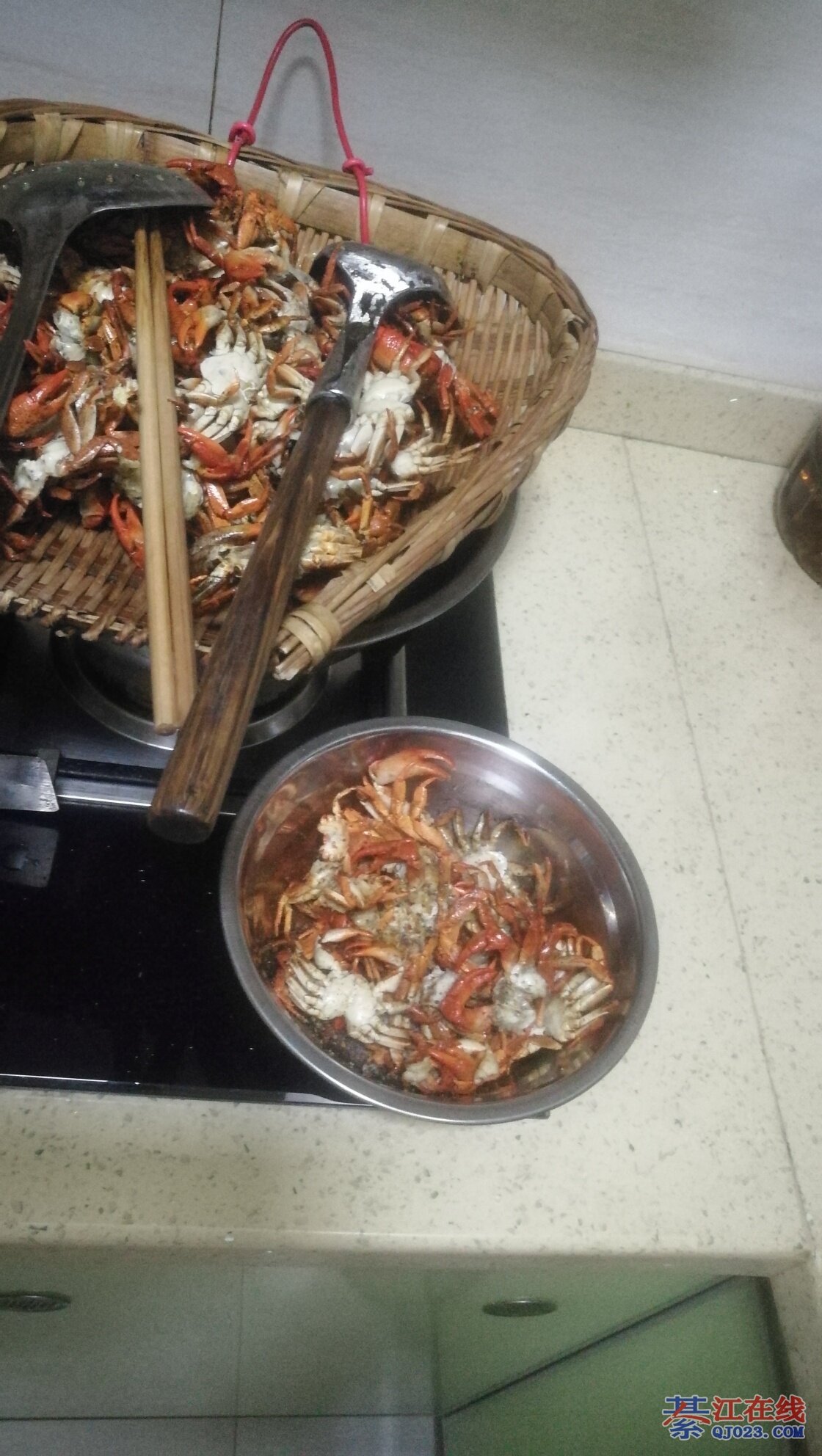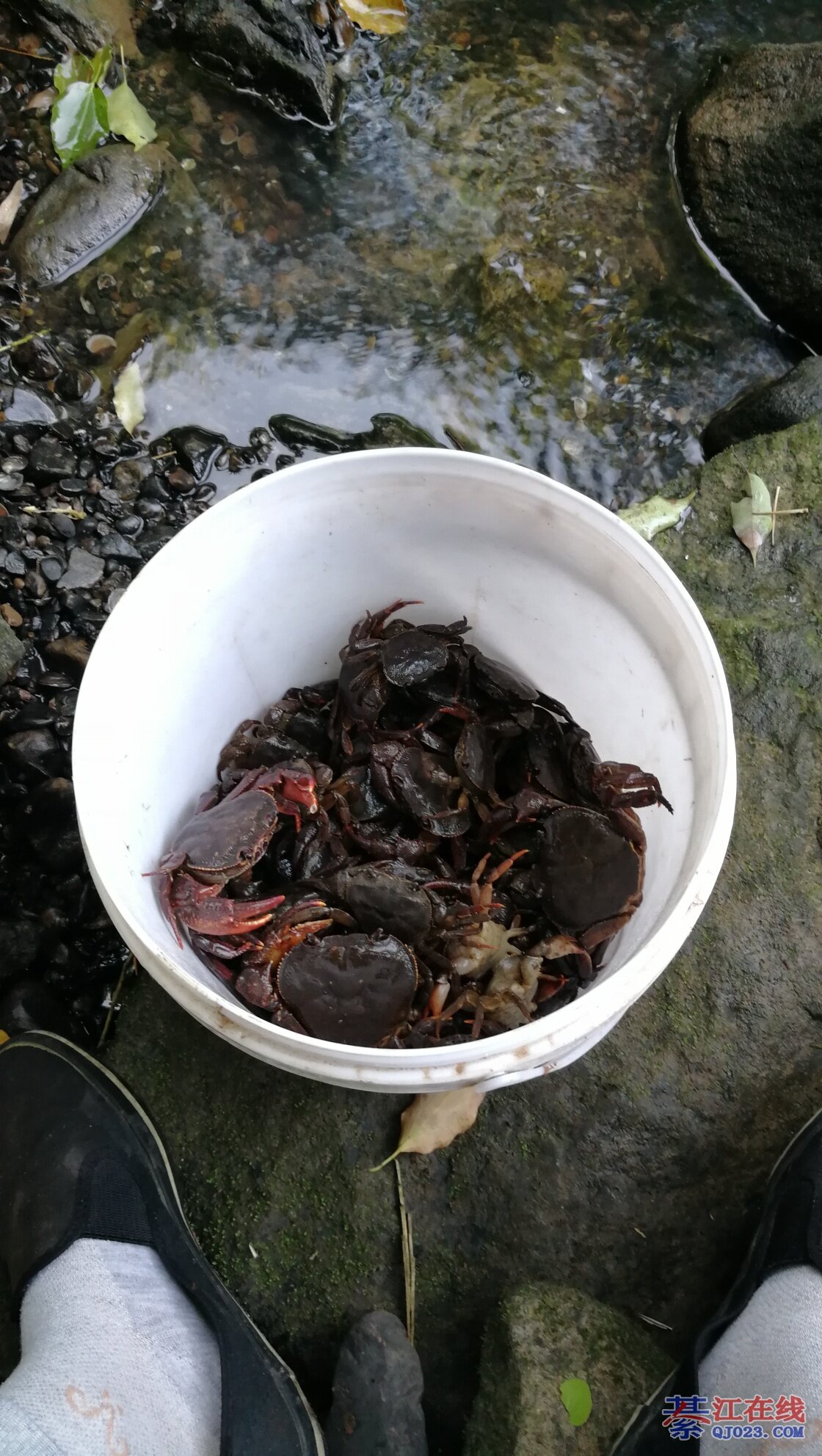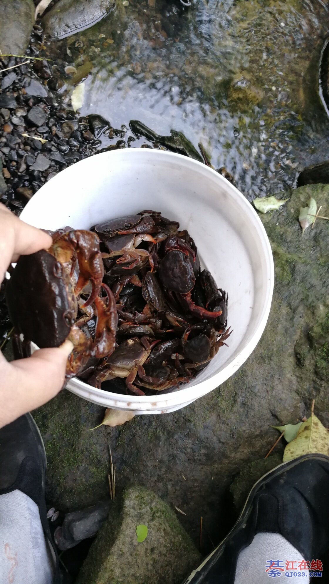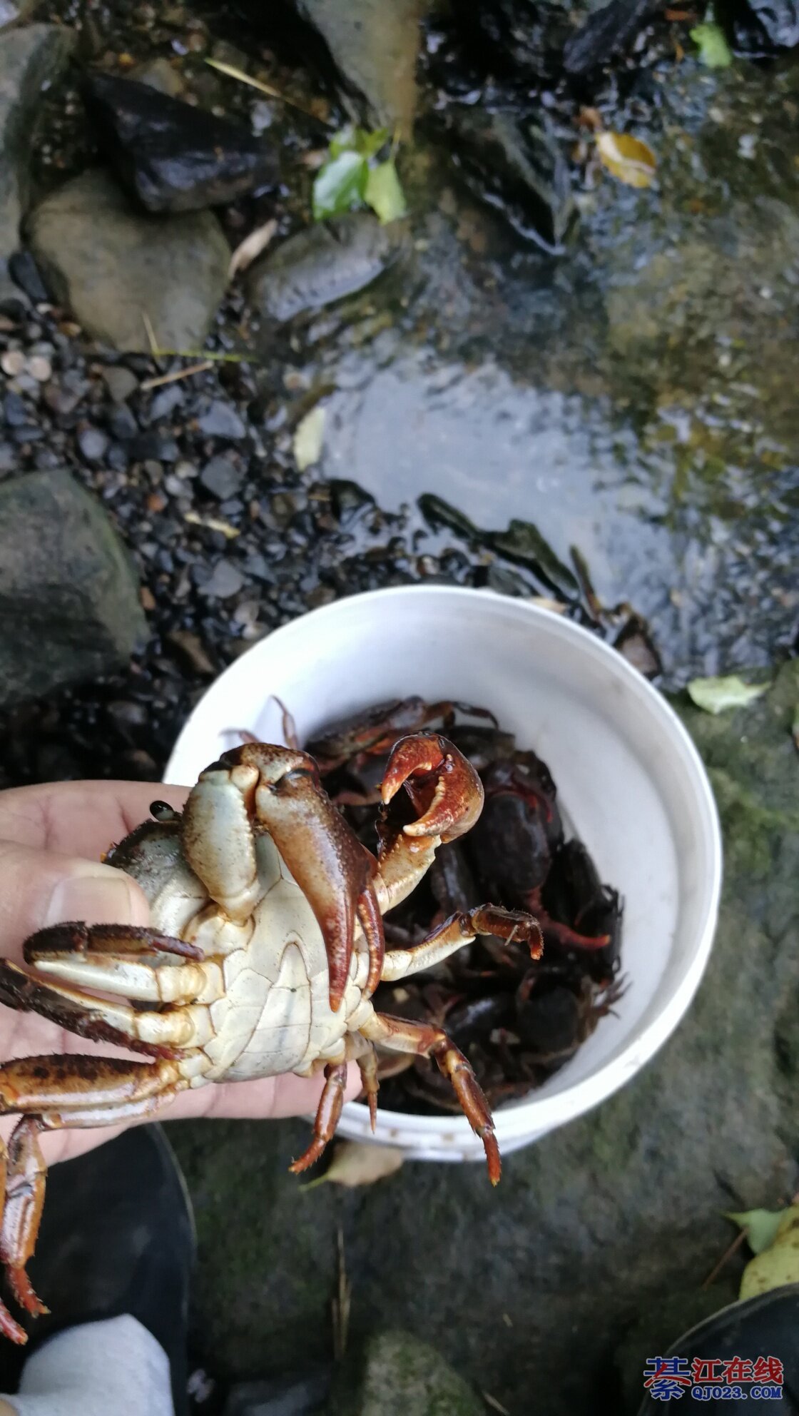 我小时候跟着舅舅家两个兄弟去河里搬螃蟹我就负责提桶桶,负责吃。