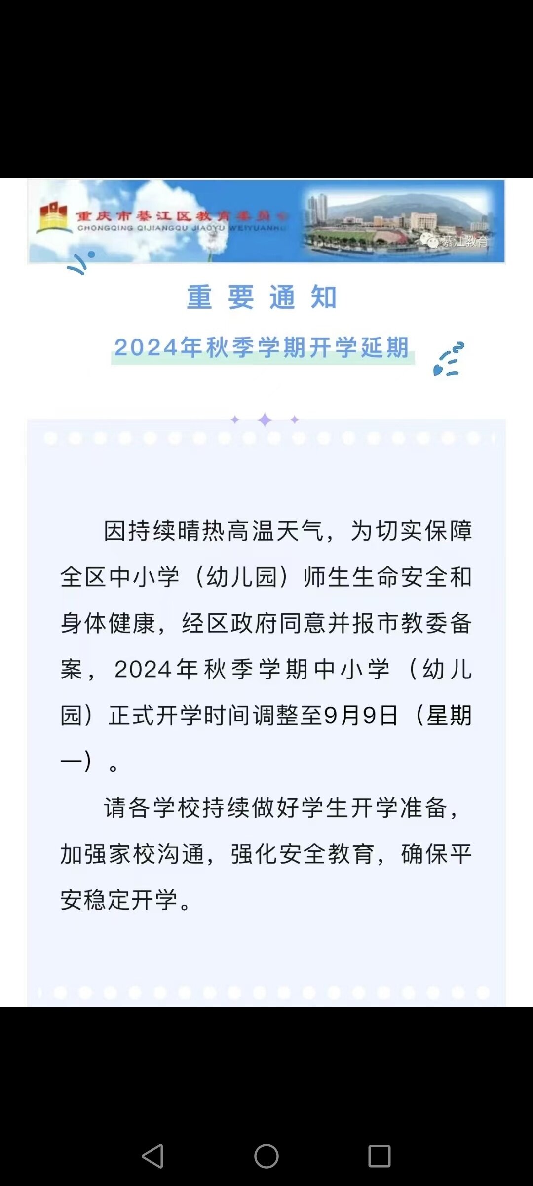 我们只通知9月2日不返校,好久返校到时候通知